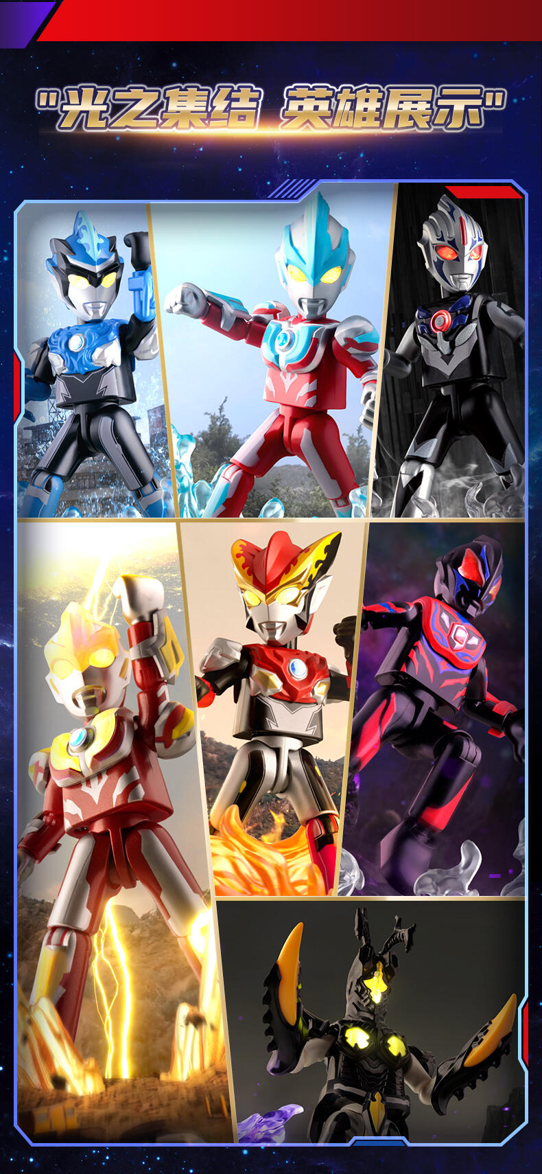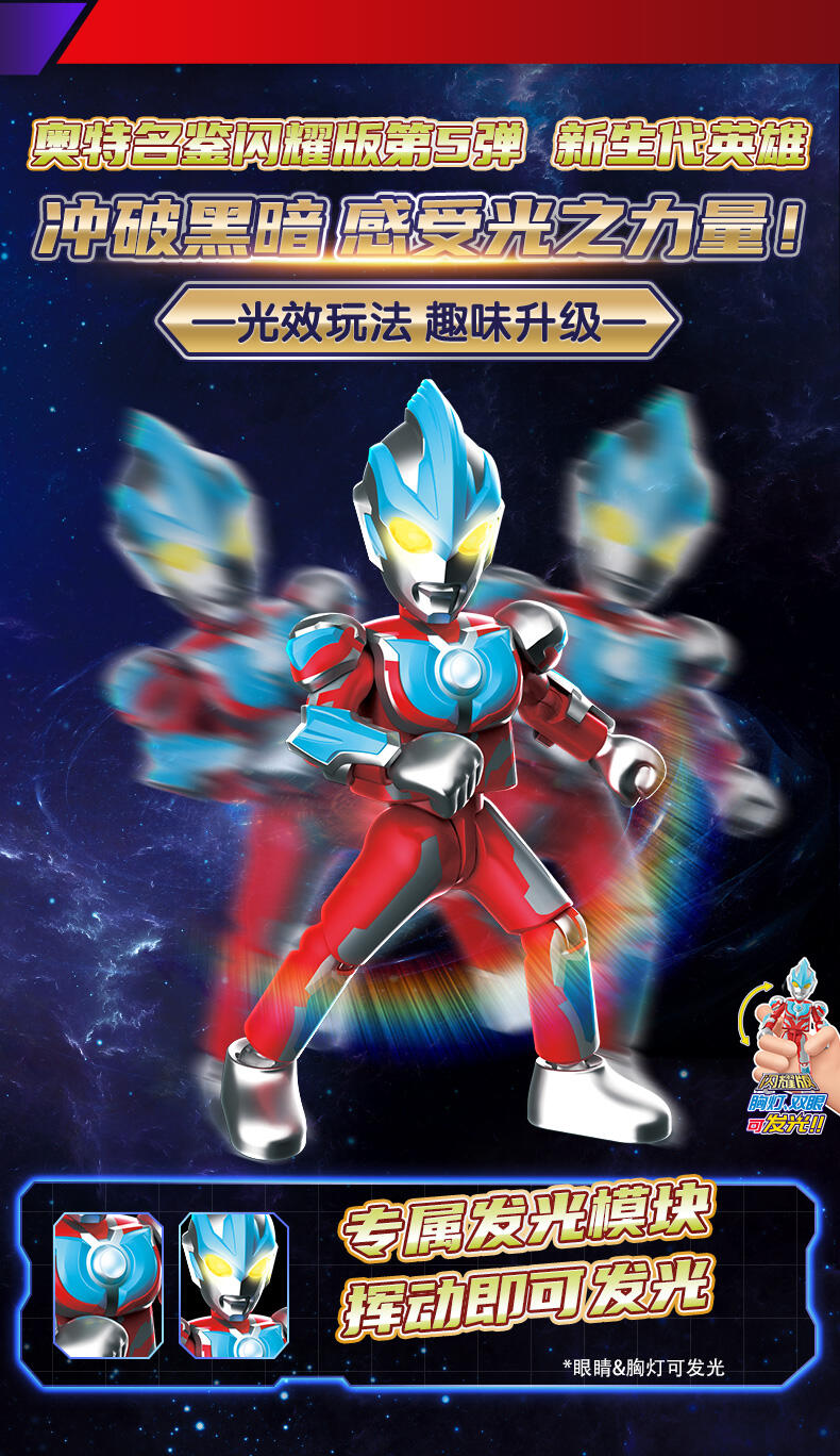 | 1、奥特曼IP,高度还原 2、多处出关节可动 3、场景道具、地面贴纸 |