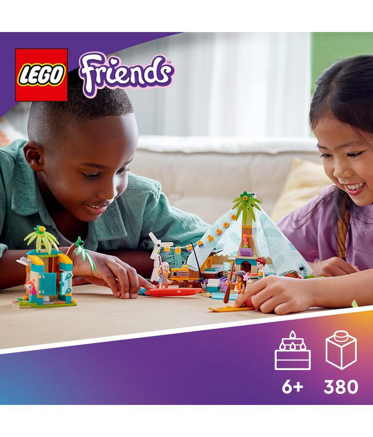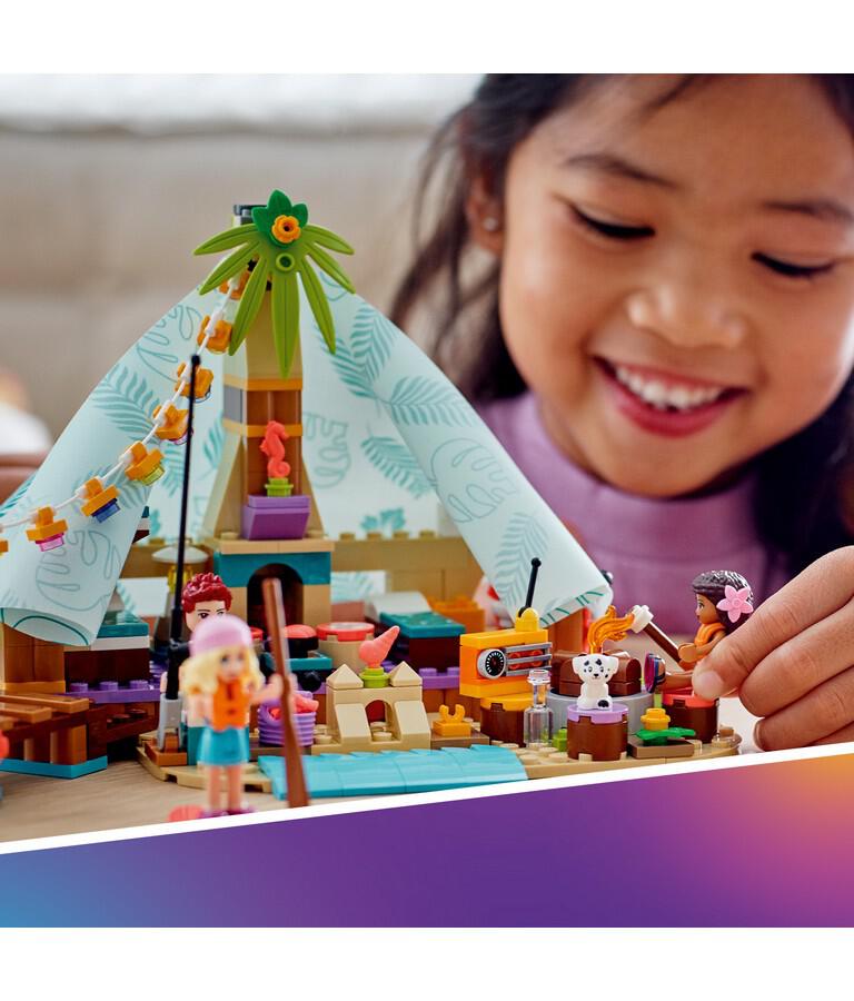 - • Gift with creative details – Authentic accessories bring the play alive. There’s soap for the shower, a shell-tiled toilet, life vests, a stereo, marshmallows on a stick and bedside lamps• Gift for kids aged 6 and up – A birthday present or special-occasion gift for children who love beach vacations and toys with creative accessories• Colourful display – Measuring over 6 in. (17 cm) high and 10 in. (25 cm) wide, this LEGO Friends set makes a fun display piece thanks to the tent’s fabric cover and string of lights• LEGO building for the digital age – Boost the fun for little builders by downloading the free Building Instruction app. The digital guide lets them zoom, rotate and visualize their models• The power of friendship – Kids can explore the joy of imagination and spending time with friends with Heartlake City toy playsets