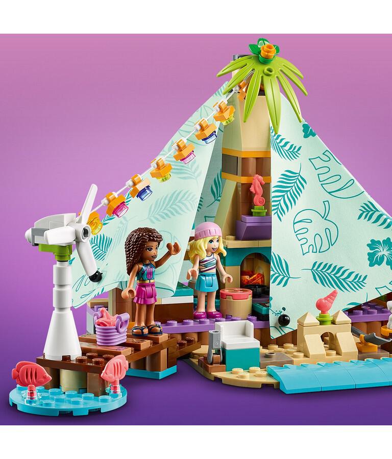 - • Feature-packed set for limitless friendship play – This LEGO glamping toy comes with lots of details to inspire hours of nature play, letting kids recreate their perfect day at the beach with friends• Camp in style – LEGO Friends Beach Glamping (41700) includes 3 mini-doll characters, a puppy figure, tent with bunk beds, stove and fabric cover, plus a spinning wind turbine to power the lights• Brimming with beach fun – This LEGO Friends playset includes 2 paddleboards, a beach with sandcastles and shells, and a jetty for fishing. At night, kids can cosy up around the campfire