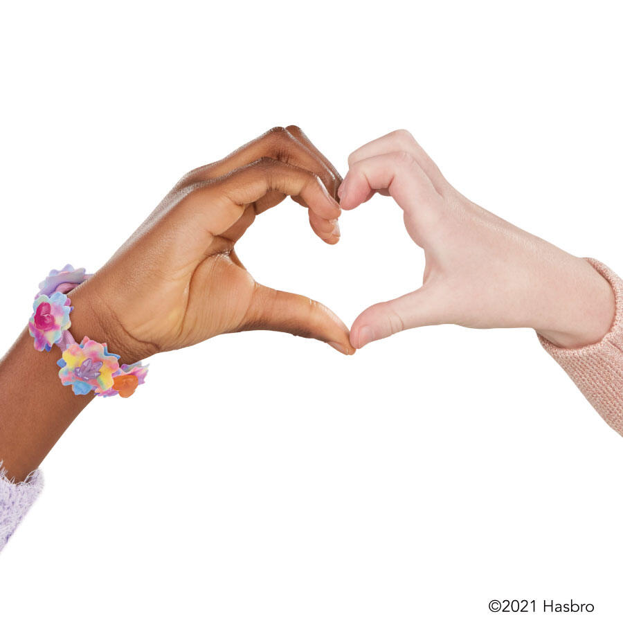 Join the sparkle squad with Izzy Moonbow: a Unicorn from Bridlewood Forest! Izzy is an energetic optimist who loves crafting, creating, and sparkles. Help Izzy design a creative new look with Unicorn Charms Izzy Moonbow, inspired by the My Little Pony: A New Generation movie. Includes a 6-inch Izzy Moonbow purple pony figure with a character-inspired heart-shaped button Cutie Mark on one side. Figure's long, soft blue hair is curled in her signature style for lots of hair play fun! Headband accessory can be decorated with the 17 fabric flower pieces and gem-shaped plug-in pieces. Plug the gems into the flowers, then customize the headband for Izzy! Headband can also be worn as a customizable friendship bracelet for kids. Includes a comb accessory for more styling fun. Fans new and old can imagine adventures with My Little Pony: A New Generation movie toys and gifts for kids ages 5 and up. My Little Pony and all related characters are trademarks of Hasbro.