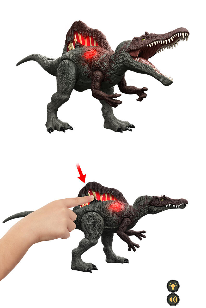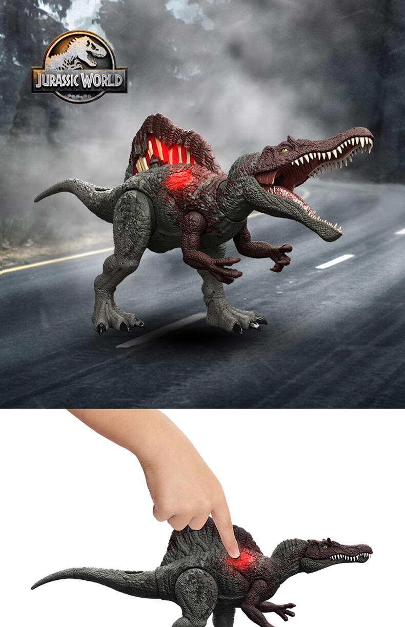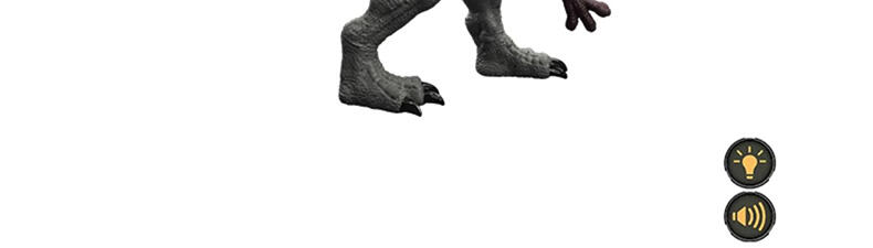 与灯光和声音进行战斗,随着游戏的进行而加剧 通过上下摆动恐龙的前爪,恐龙张开大嘴,发出阵阵嘶吼声 轻拍恐龙背脊,背部发出阵阵红光,并发出吼叫声 按下发光处按钮,会发出随战斗状态变化而加剧的灯光,模拟恐龙受伤出血的样子,并发出阵阵嘶吼 与《侏罗纪世界》内容相关的恐龙物种