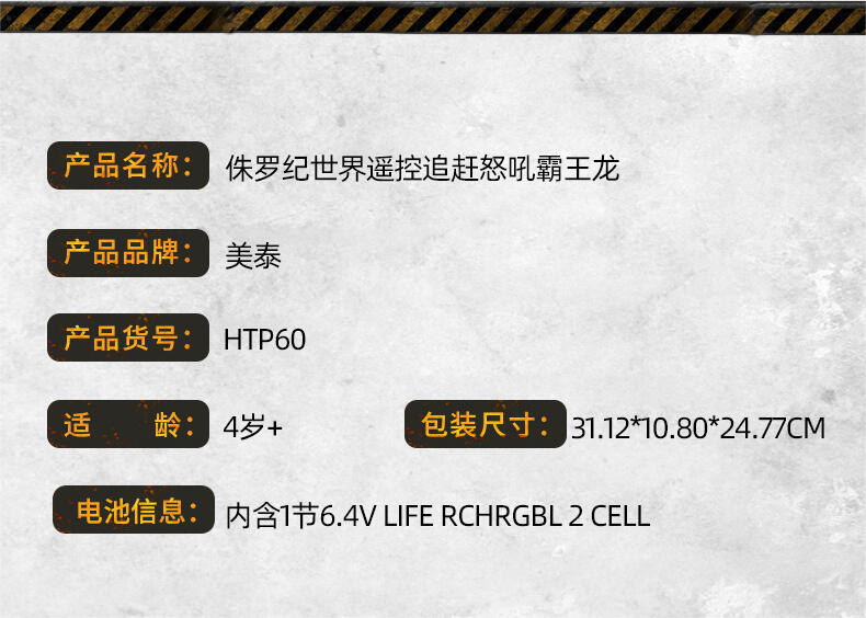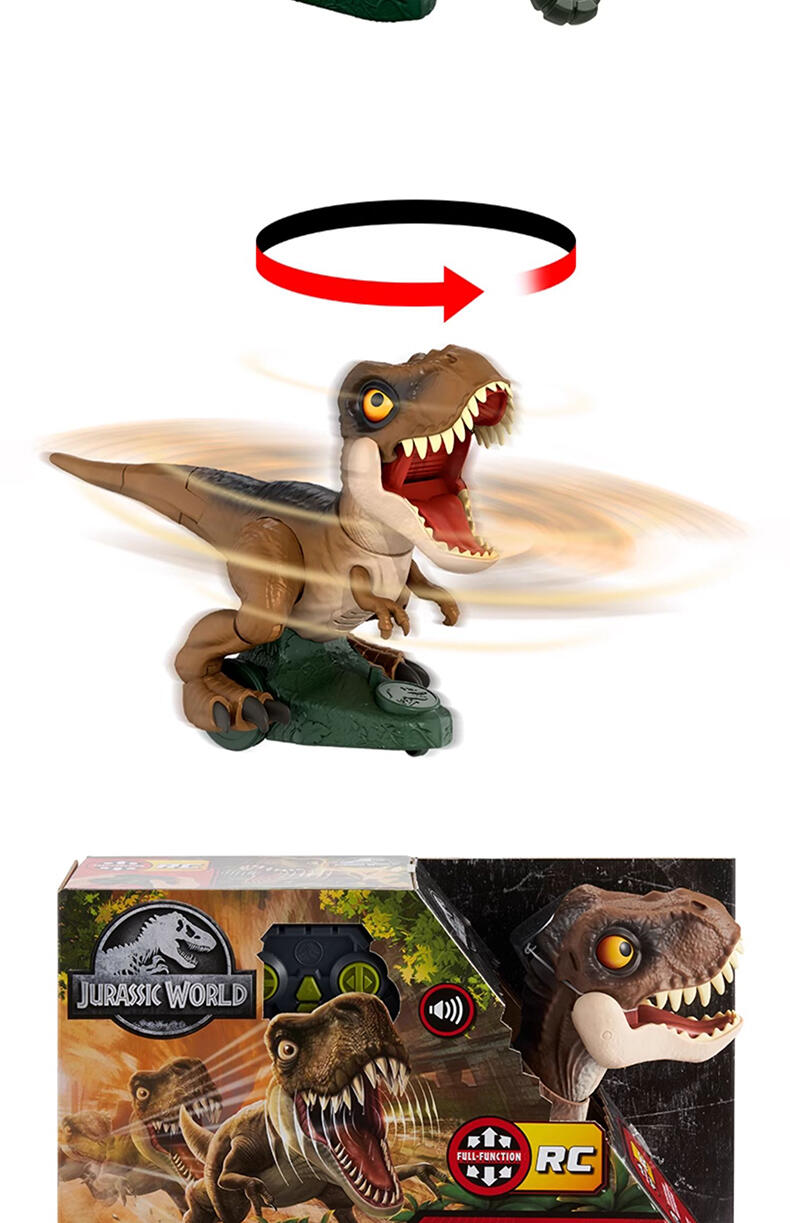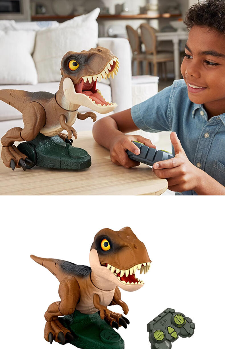 侏罗纪世界系列中的标志性物种——霸王龙 具有咆哮声效/上下咬合等功能的遥控恐龙 融入经典的恐龙游戏模式, 如赛车/追逐及富有想象力的故事讲述
