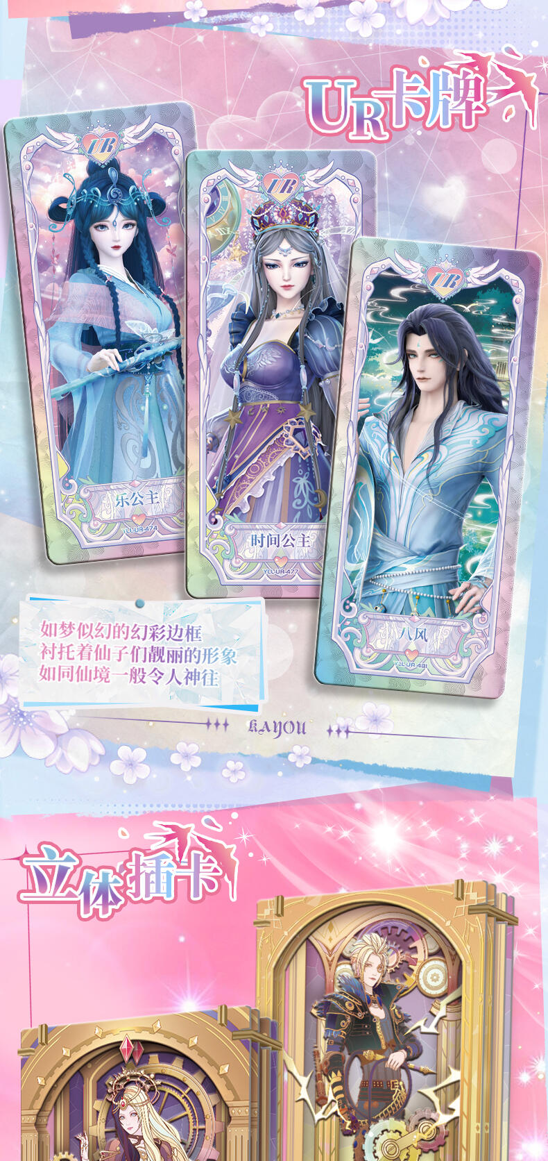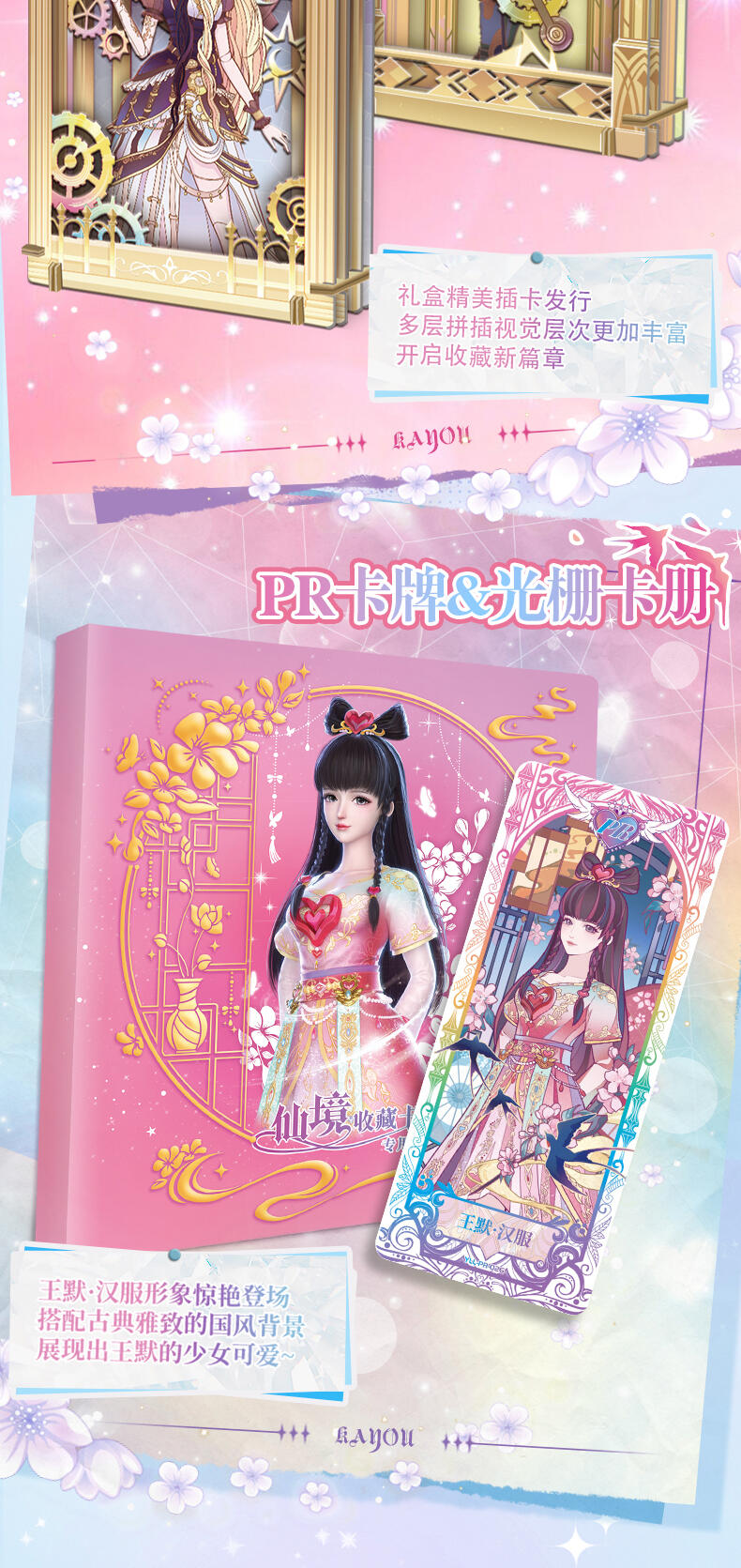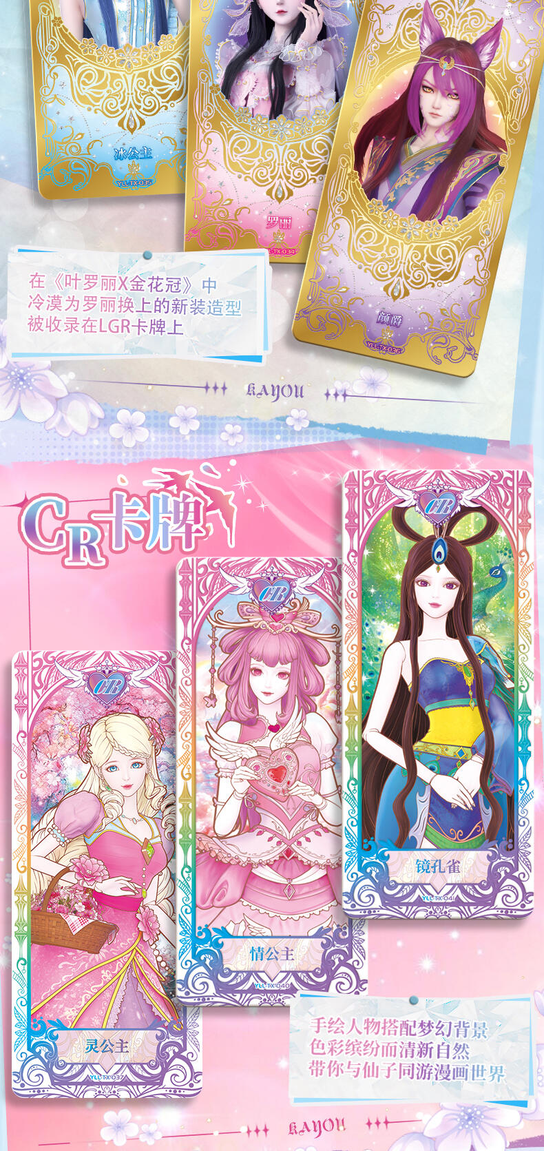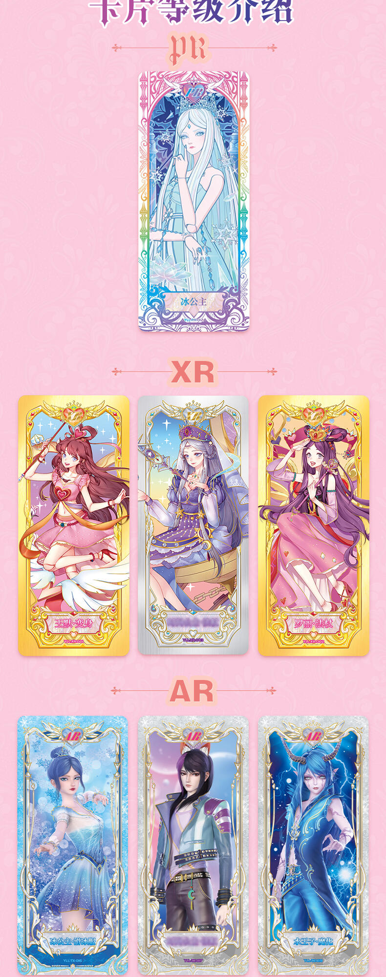 叶罗丽-仙境收藏卡-童心礼盒梦幻来袭。粉嫩配色外盒搭配精细烫金工艺勾勒出华美花纹与叶罗丽logo,尽显精致华丽。礼盒包含卡包、卡册、色纸、赠送卡等丰富内容,更有概率获得绝美立绘XR卡与彩晶冰霜AR卡这两种全新面市的高稀有度卡牌。童心礼盒每盒包含6包卡牌+2张色纸+1本卡册+1张赠送卡