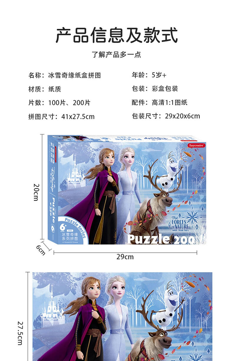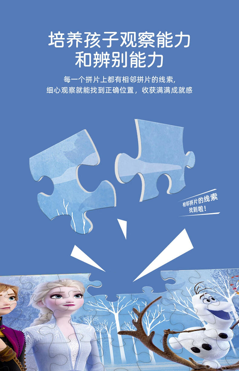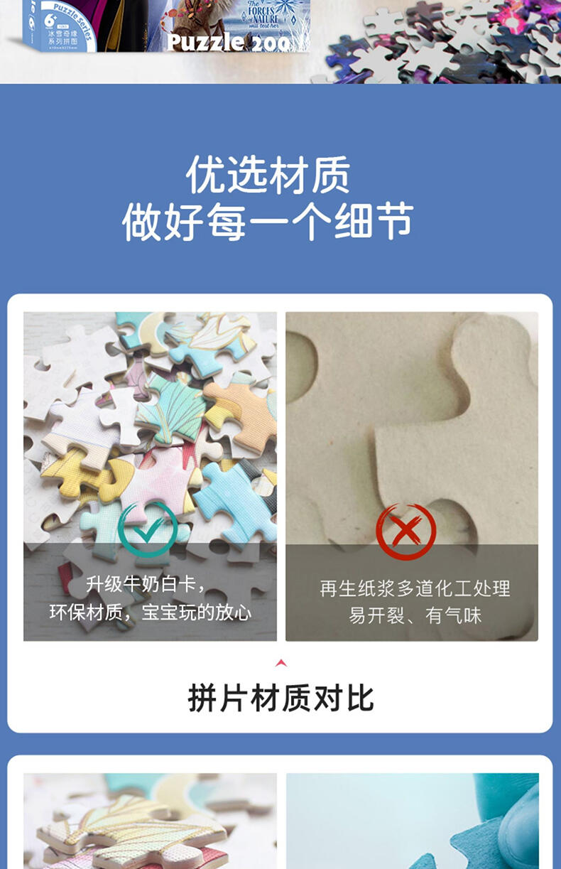 正版授权IP-冰雪奇缘,高清画质,趣味场景;采用优质白卡材质,拼片光滑无毛刺,品质优良,手感舒适;包装内1:1高清图纸,方便对照,玩起来更轻松;印刷清晰,色彩明亮;拼玩过程动手动脑,锻炼手脑灵活