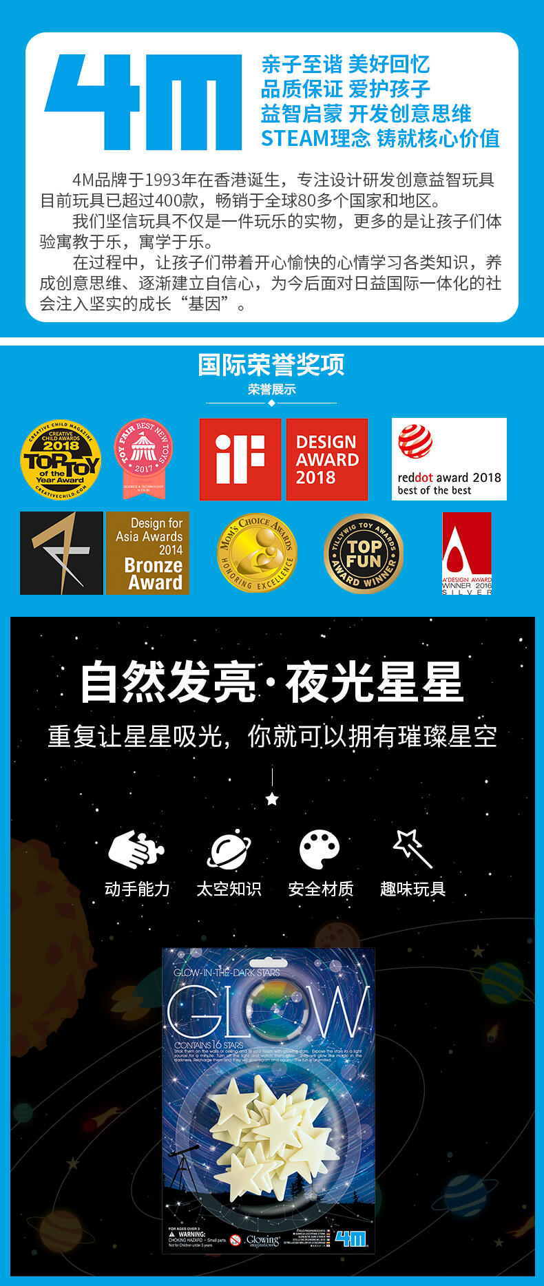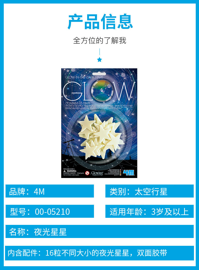 4M 夜光星星,让你的房间满布星星,夜光带点神秘,星星带点梦幻。产品材质:塑料。