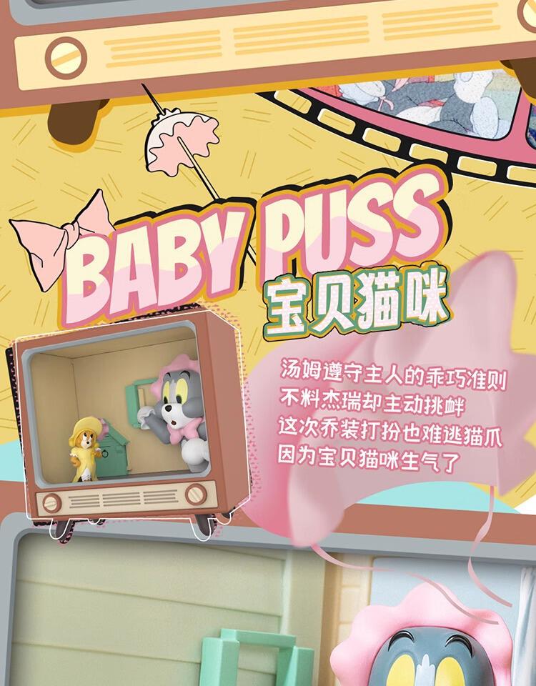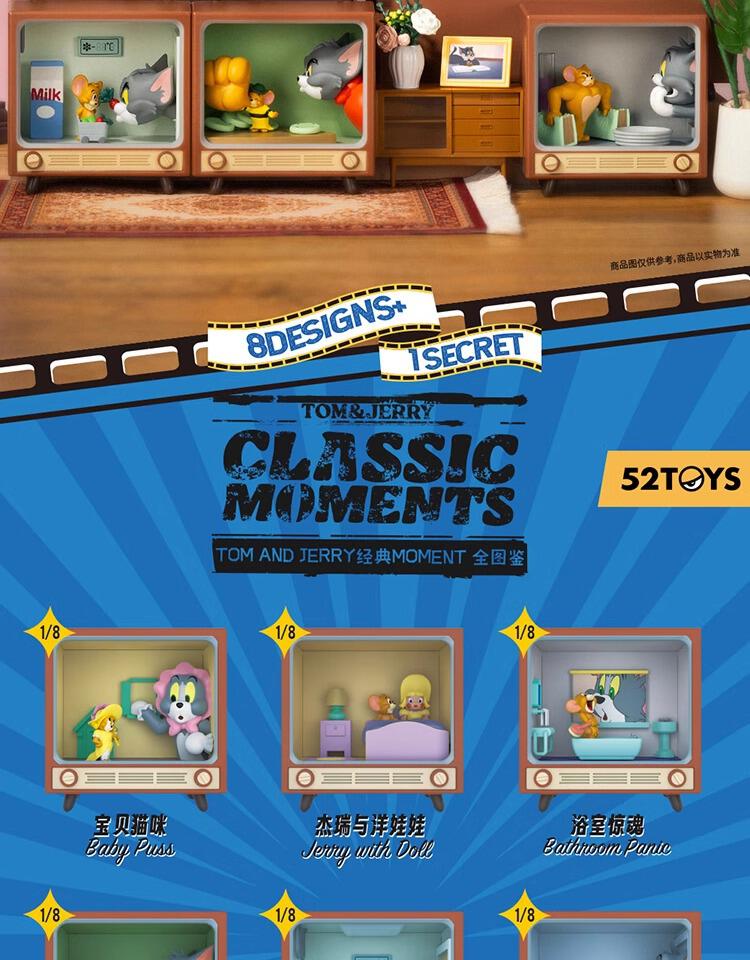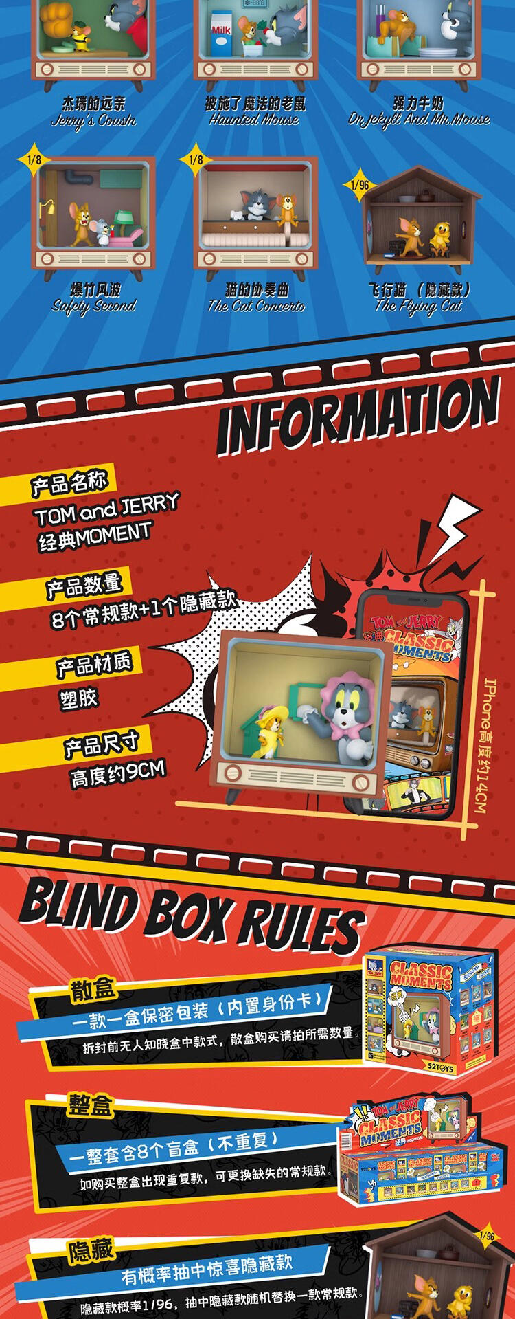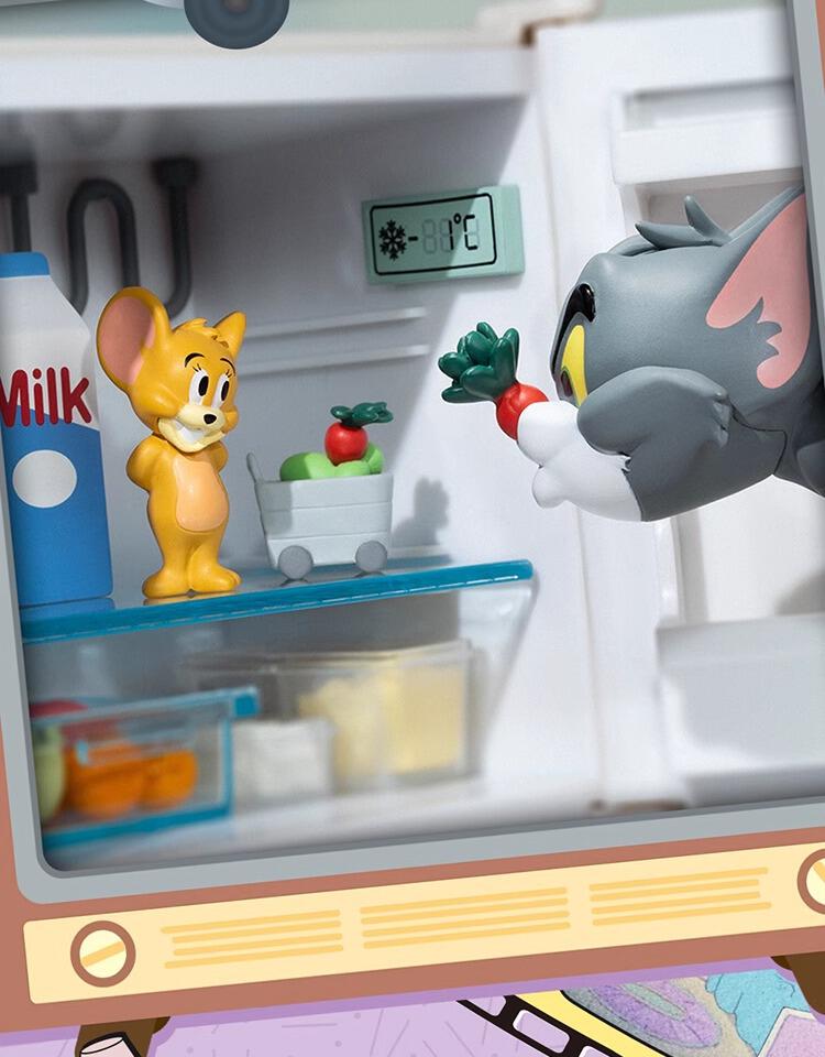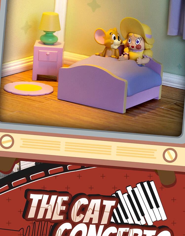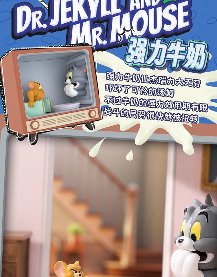 "设计背景:电视机造型内还原每一个属于TOM and JERRY的经典瞬间。 产品亮点 :本套产品有用到光油和透明件的工艺,凸显出产品的质感。部分配件可挪动,可随意摆放。"