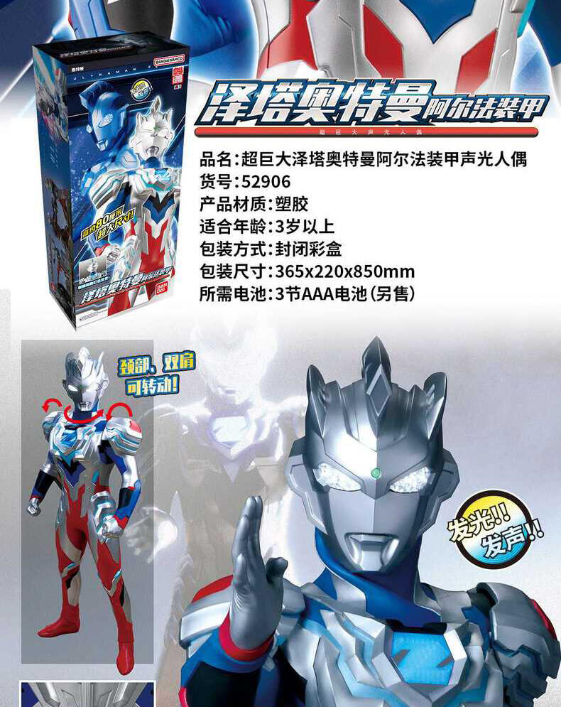 至Ultraman超巨大泽塔奥特曼阿 尔法装甲声光人偶的链接已被复制