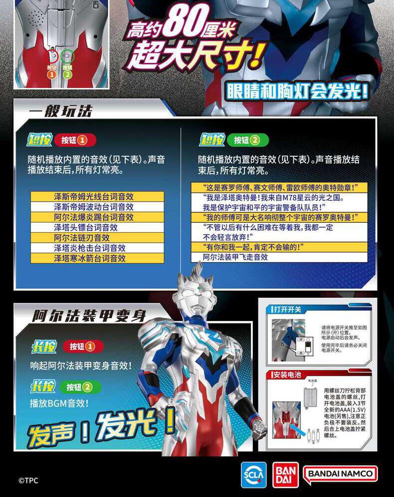 Ultraman超巨大泽塔奥特曼阿 尔法装甲声光人偶