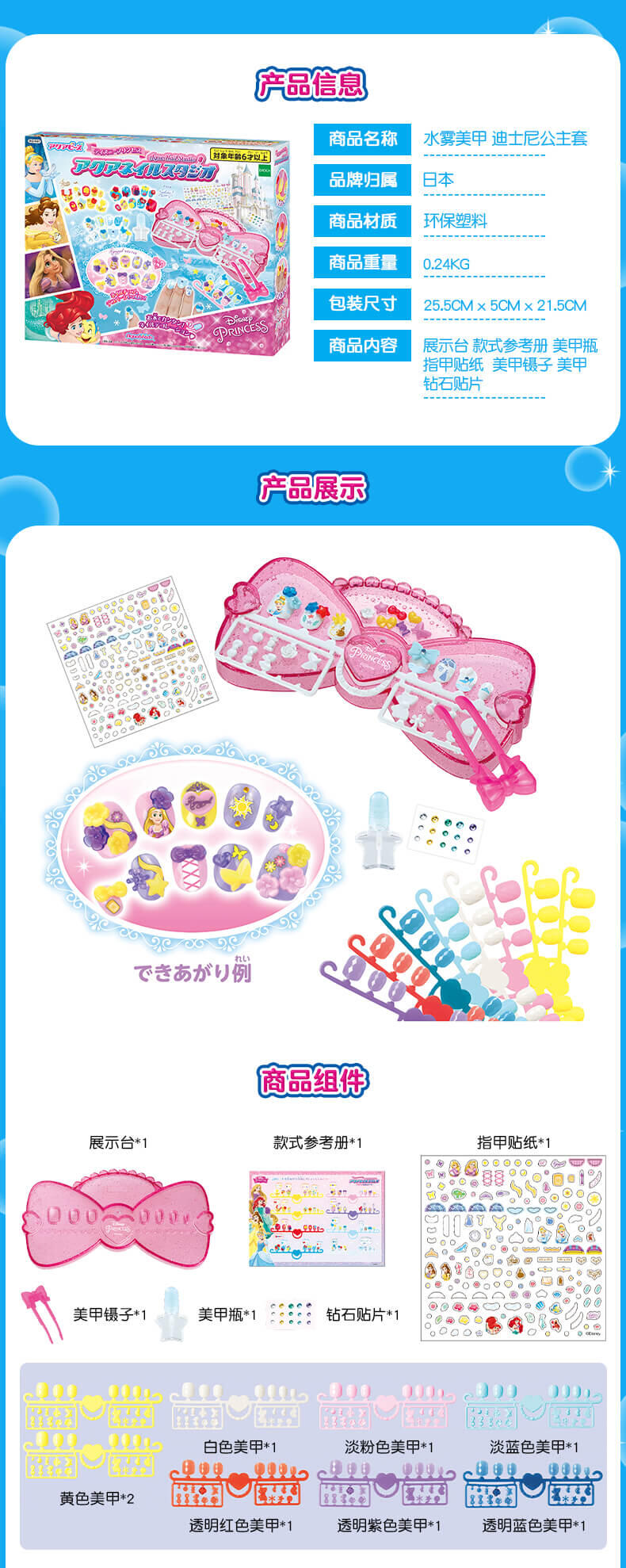 Disney Princess迪士尼公主 水雾美甲迪士尼公主套装