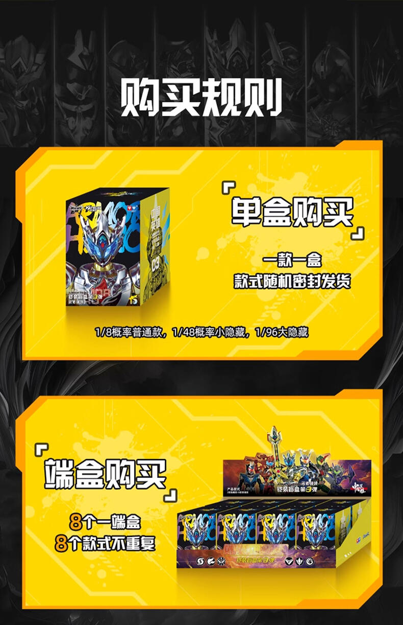 预拼装(素体上已经装好部分零件 普通款精致涂装&透明胶件,发色好看 大小隐藏精涂,大隐藏雅塔莱斯配齐武器 全角色增加透明复眼细节(除安迷修和路法) 素体升级到第三弹且8款角色用到5套素体,其中4套素体新开模:拿瓦&驮拏多、茨纳米&酷雷伏、特鲁、雅塔莱斯四套为新开模素体,增加胸部关节可动,路法&安迷修为共用一套素体。 附带人物角色卡一张(每张对应角色,其中大小隐藏的雅塔莱斯&特鲁和普通款的雅塔莱斯&特鲁卡片不一样) 配置一个置物地台