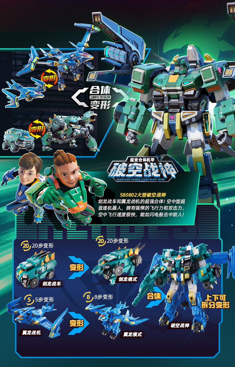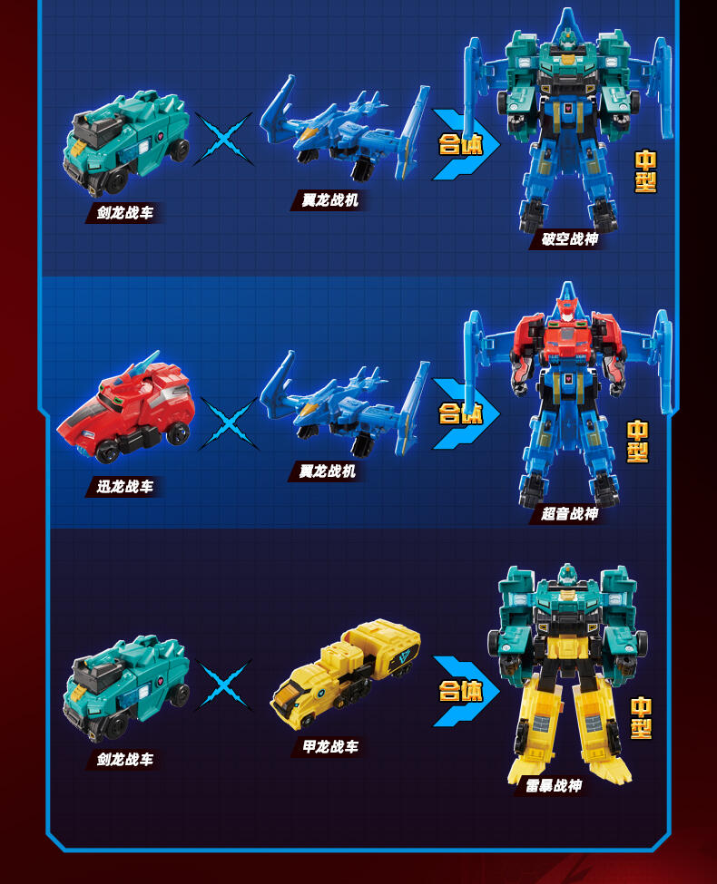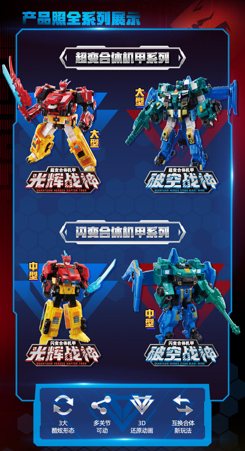 3.互换合体:光辉战神、破空战神上下机体可互换合体御空战神、雷暴战神