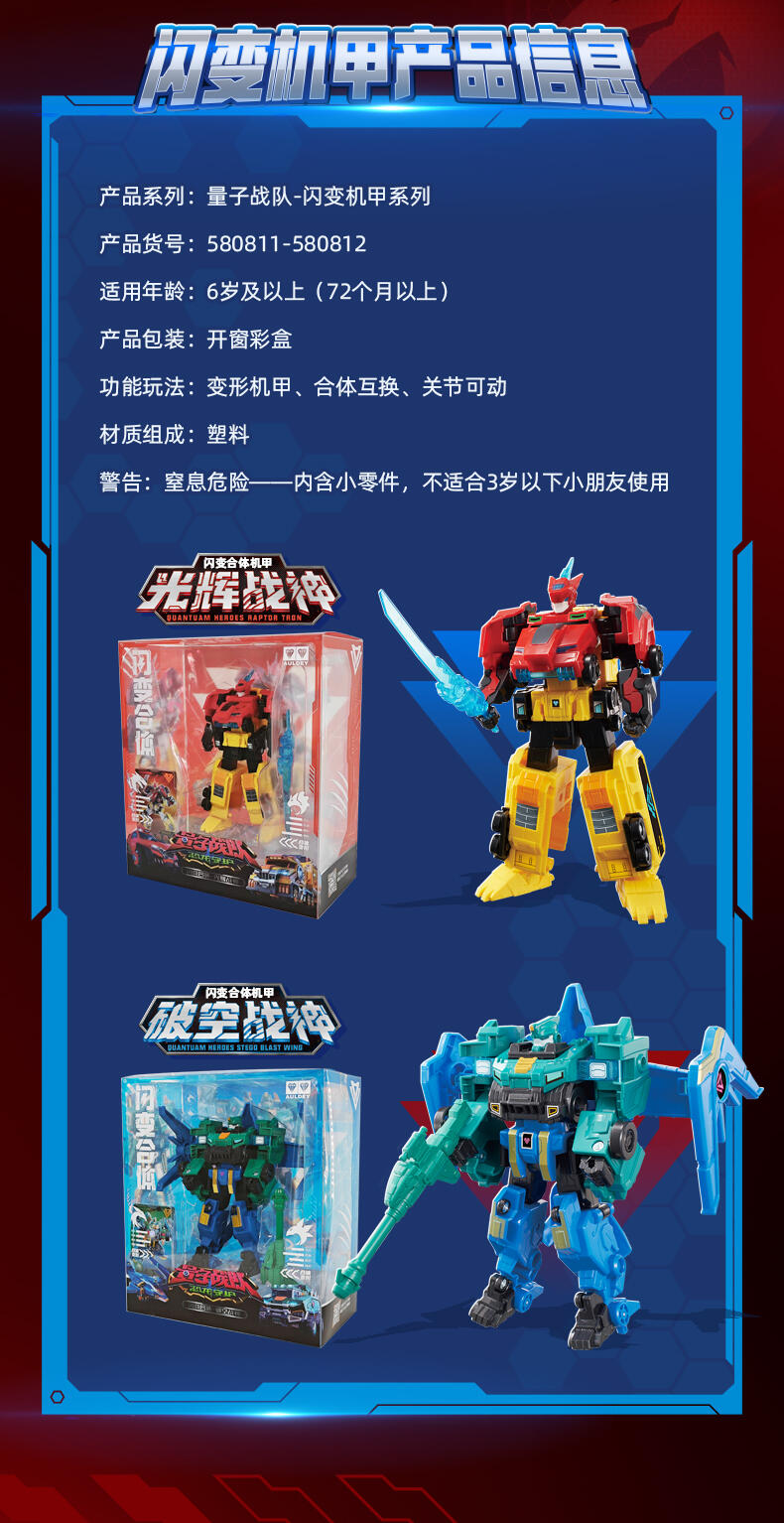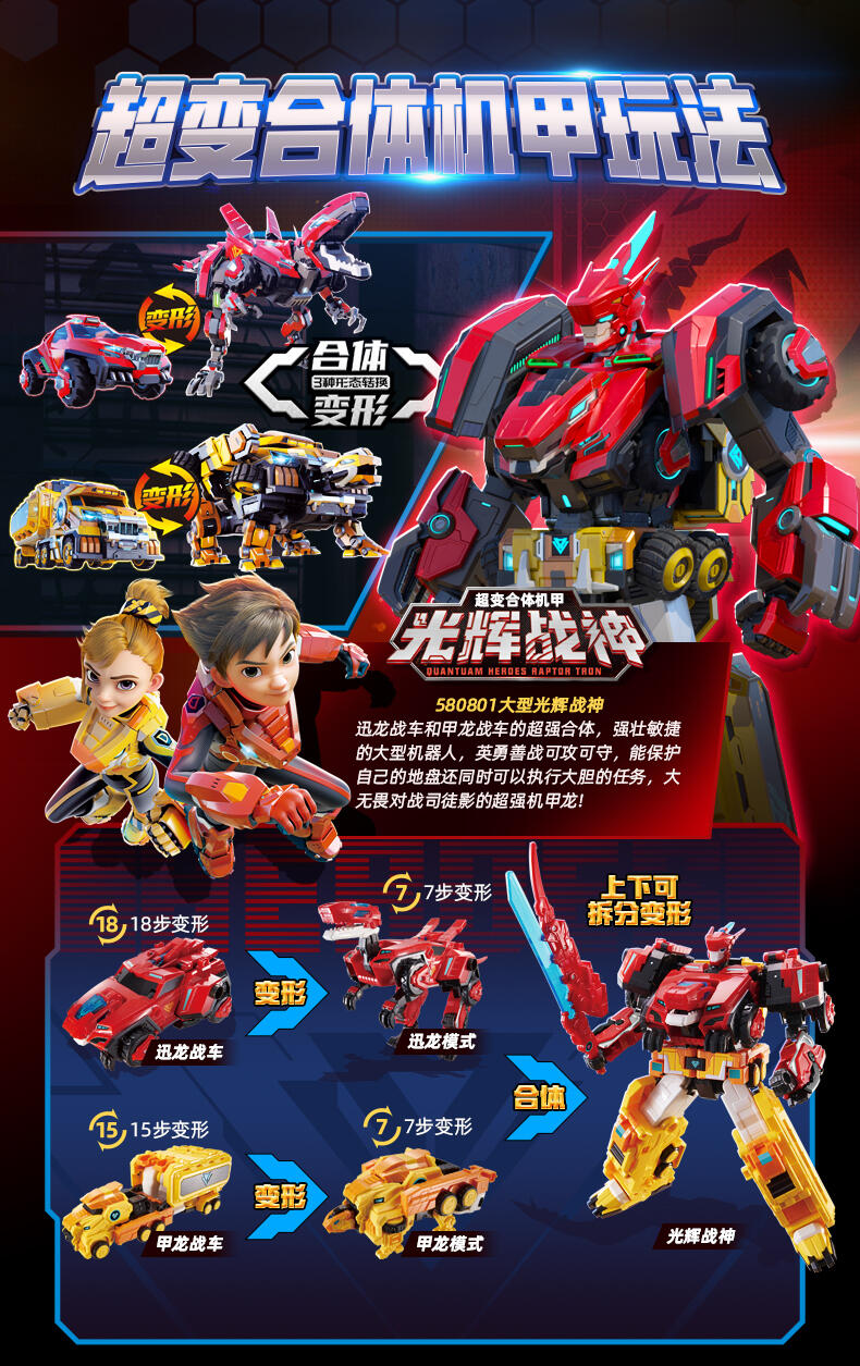 2.合体:车/恐龙2合1机器人,购买两个机器人可以切换4合1量子战神