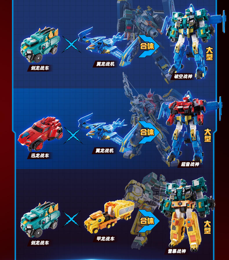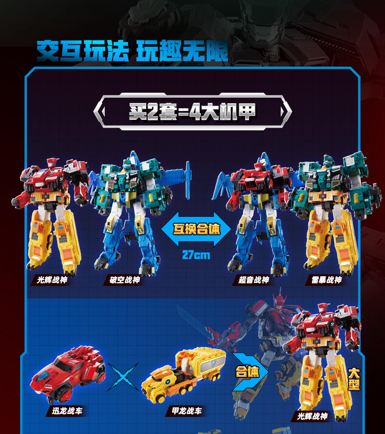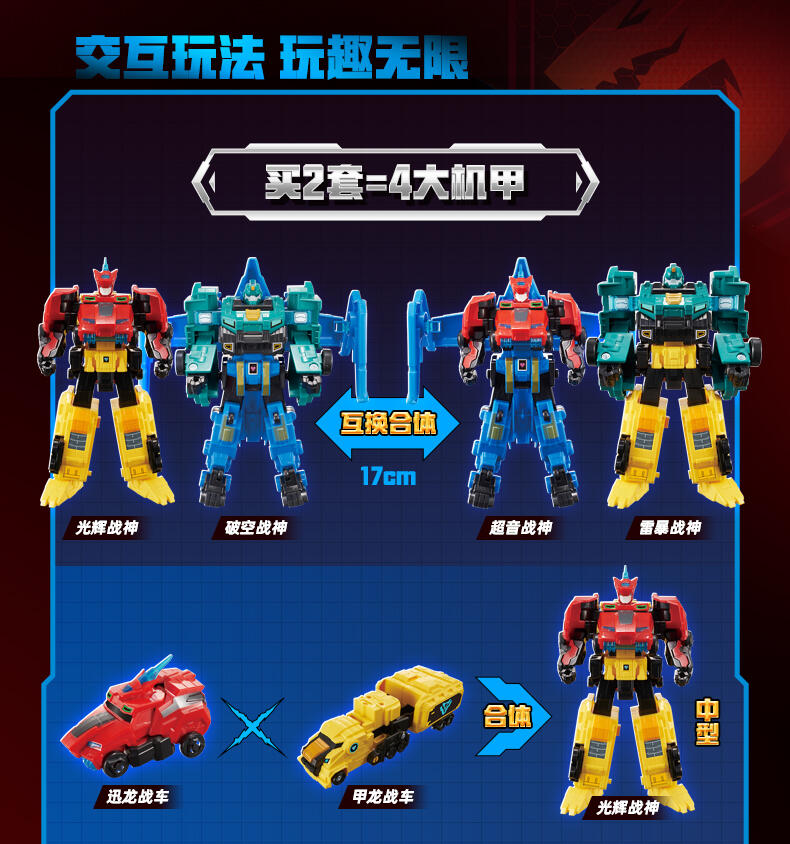 3.互换合体:光辉战神、破空战神上下机体可互换合体御空战神、雷暴战神