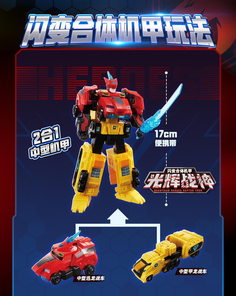 2.合体:车/恐龙2合1机器人,购买两个机器人可以切换4合1量子战神