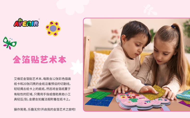 艾维尼金箔贴艺术本,每款含12张彩色插画纸卡和20张闪亮的金纸