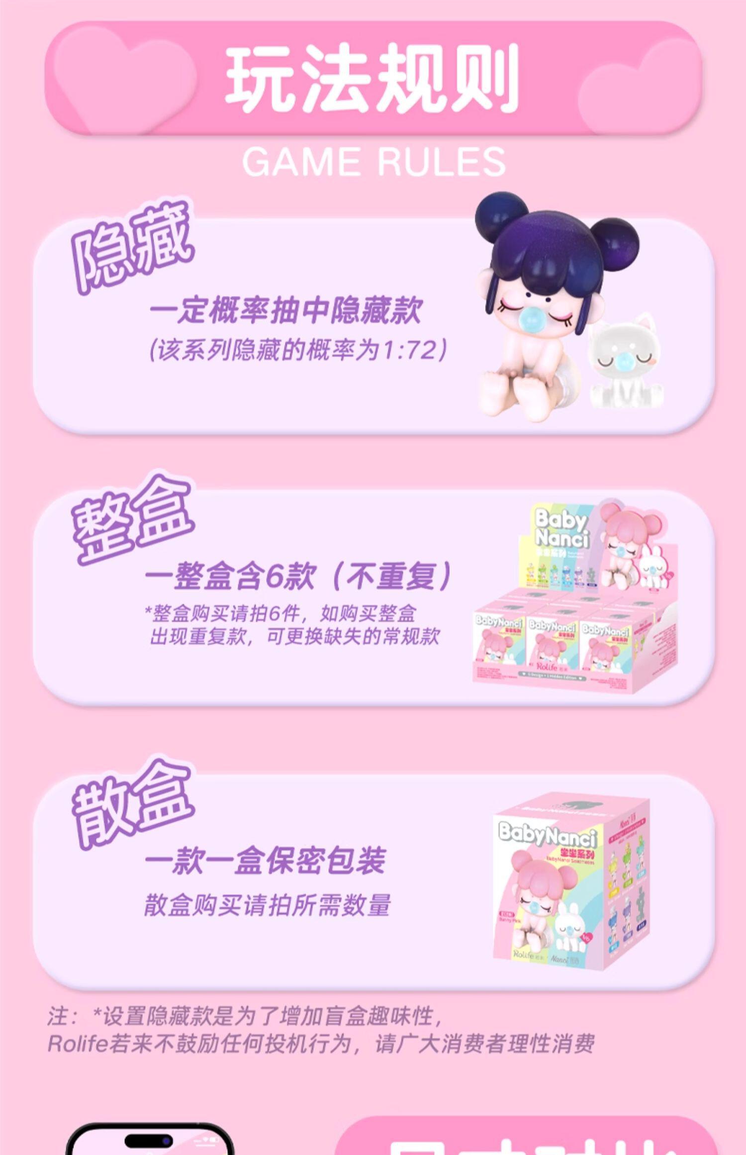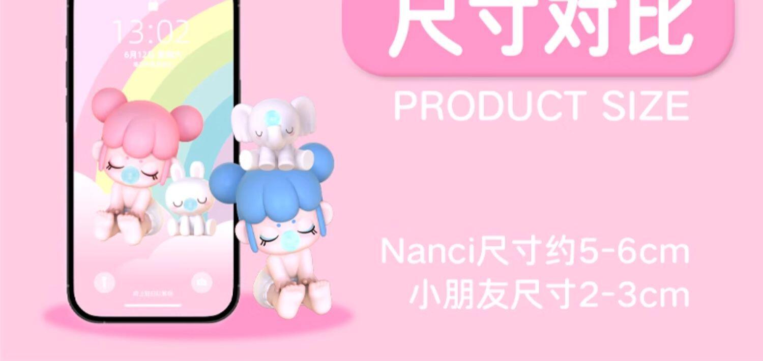"1.主题:Nanci囡茜Baby 坐坐系列 2.产品规格: 6+1(有6个常规款,1个隐藏款,隐藏生产配比是1:72) 3.关键词:拥抱本真,回归出新,轻轻松松做个小baby 4.产品卖点: ①形式:一直nanci搭配一直小动物。变换配色,工艺及移印; ②玩法: A利用nanic自身大量的圆的设计初衷,让消费者盘她; B人与小动物磁吸相连可互相替换"