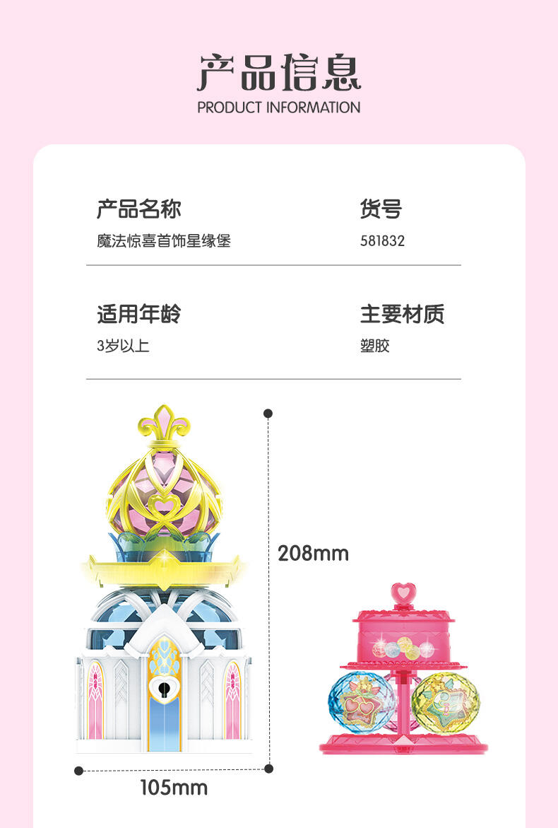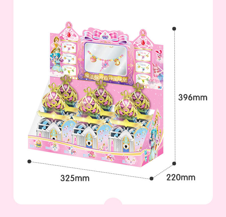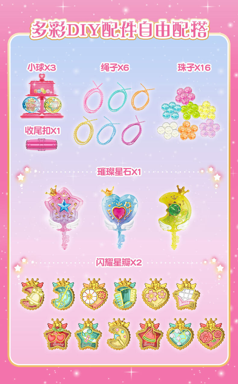 1. 含城堡外壳1个,内置限定星石1个,首饰架1个,彩球3个,蕴藏21款配件,随心搭配DIY专属项链。