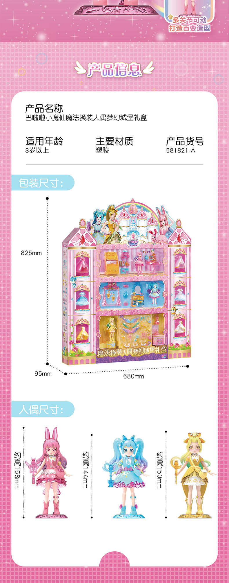 更有魔法小盒,拆出惊喜配件。" "城堡型包装,再现动画场景。