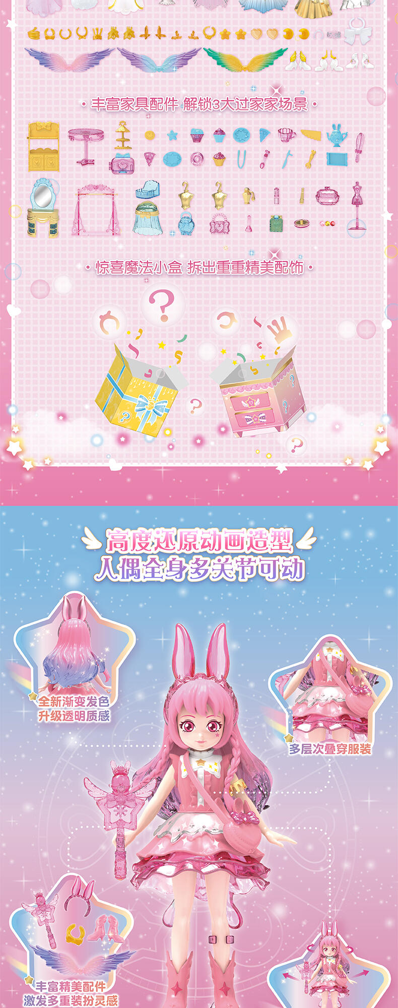 3大主角人偶,130+精美配件,尽享经典换装游戏。