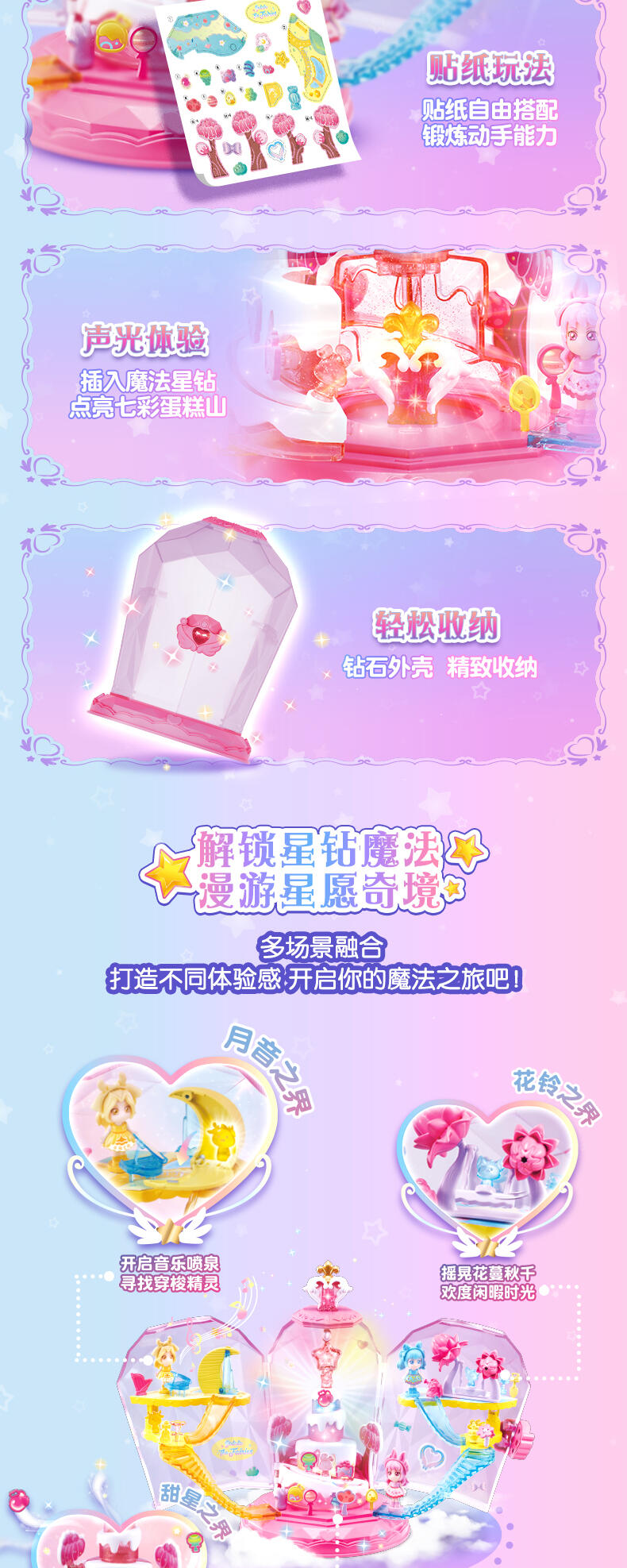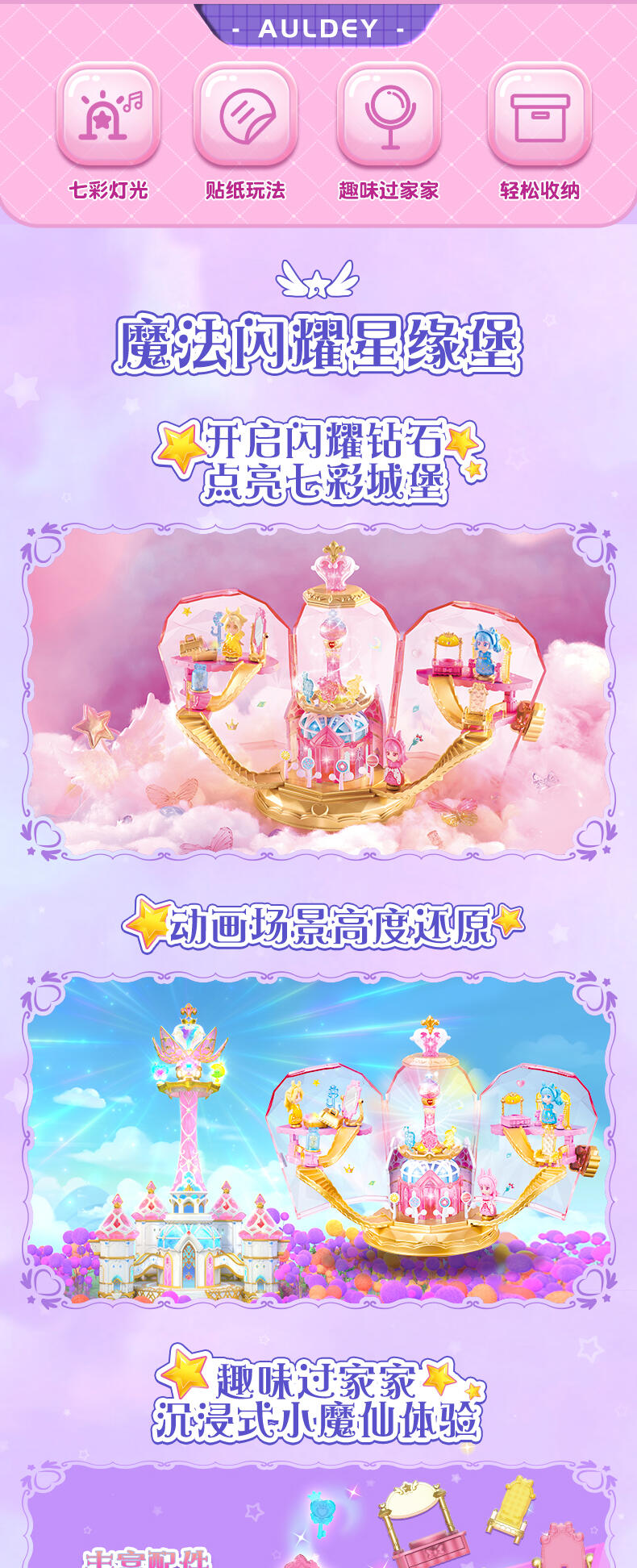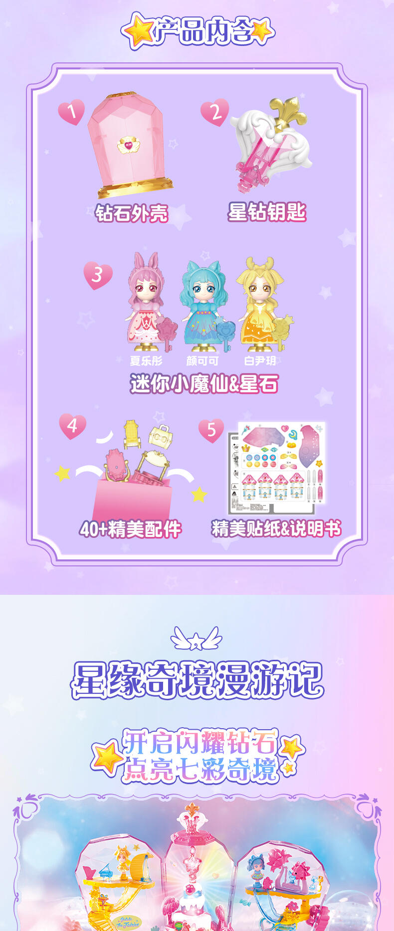 40+丰富配件,趣味过家家,配备多只人偶/宠物,可化身华丽小魔仙身临奇境