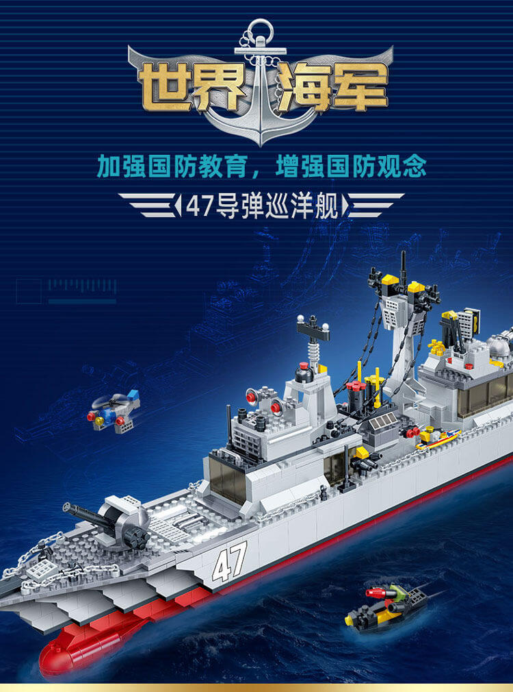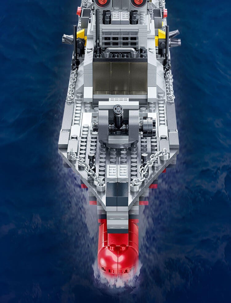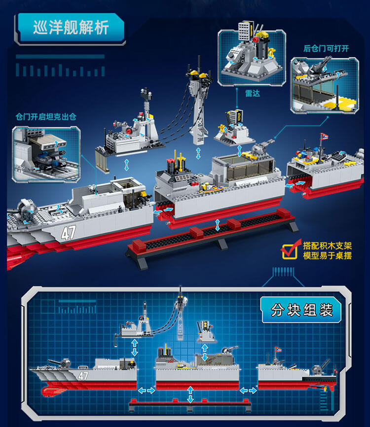 3.军舰支架,平稳摆放,船身可分3段拼插