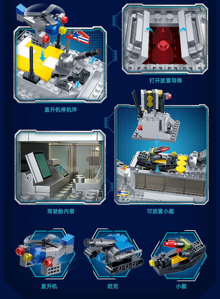 2.该产品共1357颗粒,模拟垂发装置及驾驶舱场景。