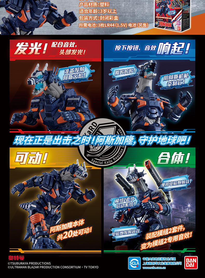 布莱泽奥特曼-阿斯加隆套装可发光发声,全身20处可动,更能和模组2套件合体,发出不同的音效!