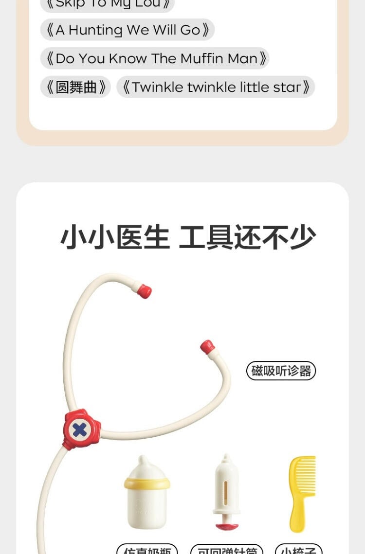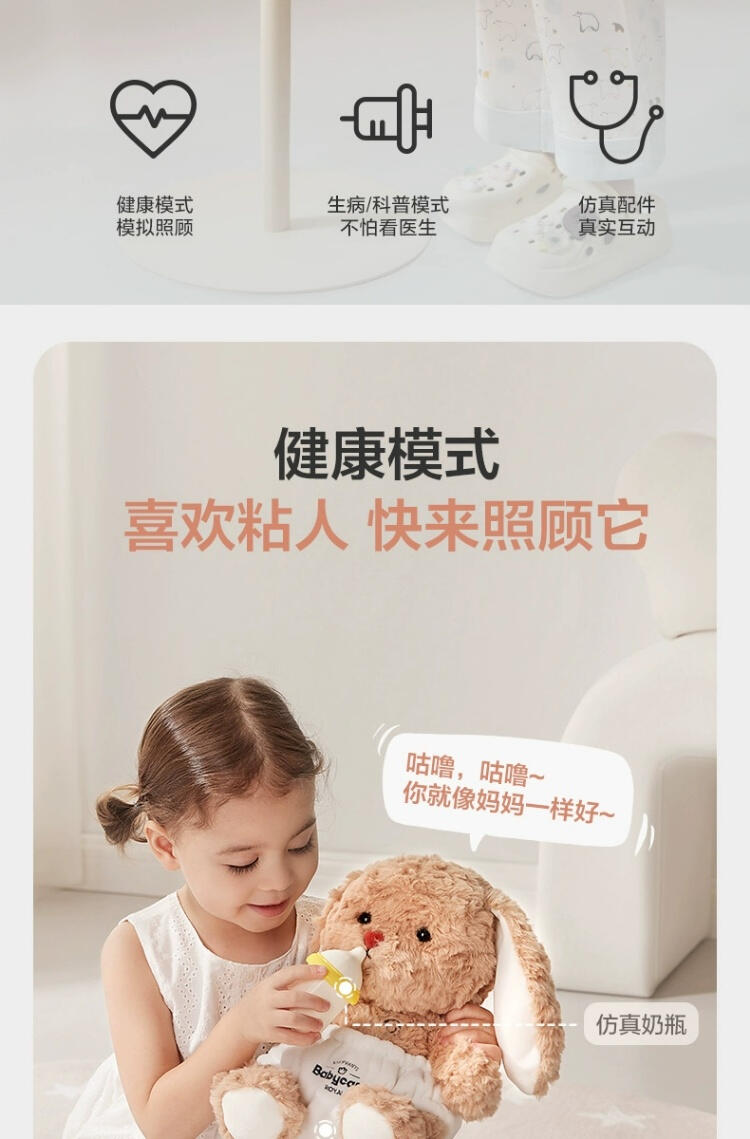 医护过家,趣味互动;萌趣可爱;声光陪伴,快乐成长;暖心陪伴,温馨记录.