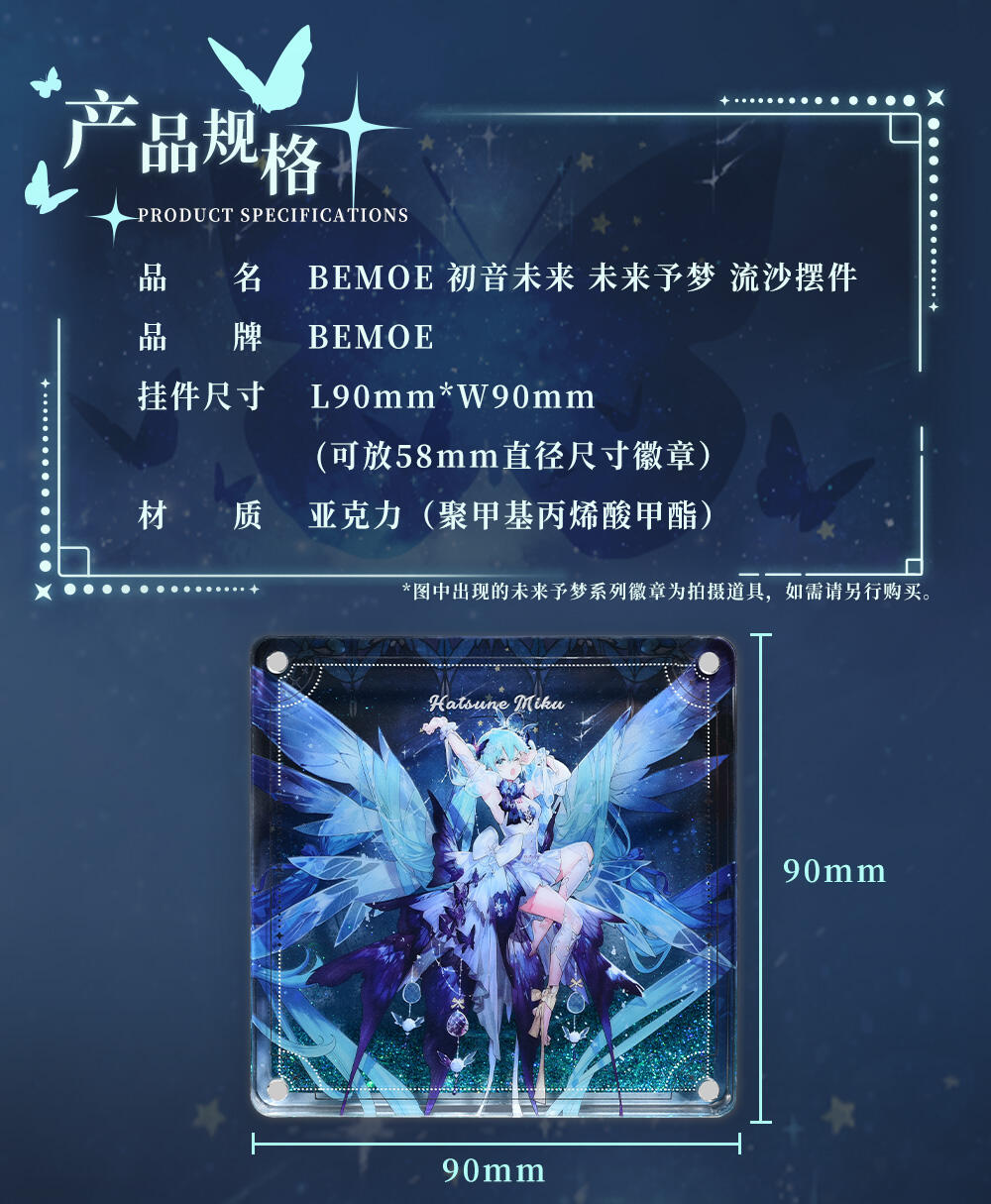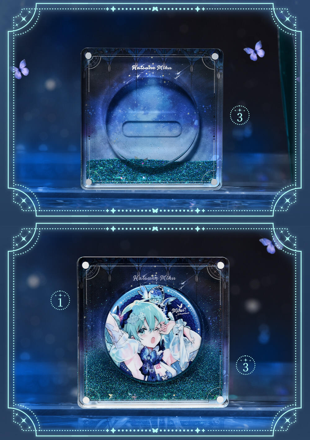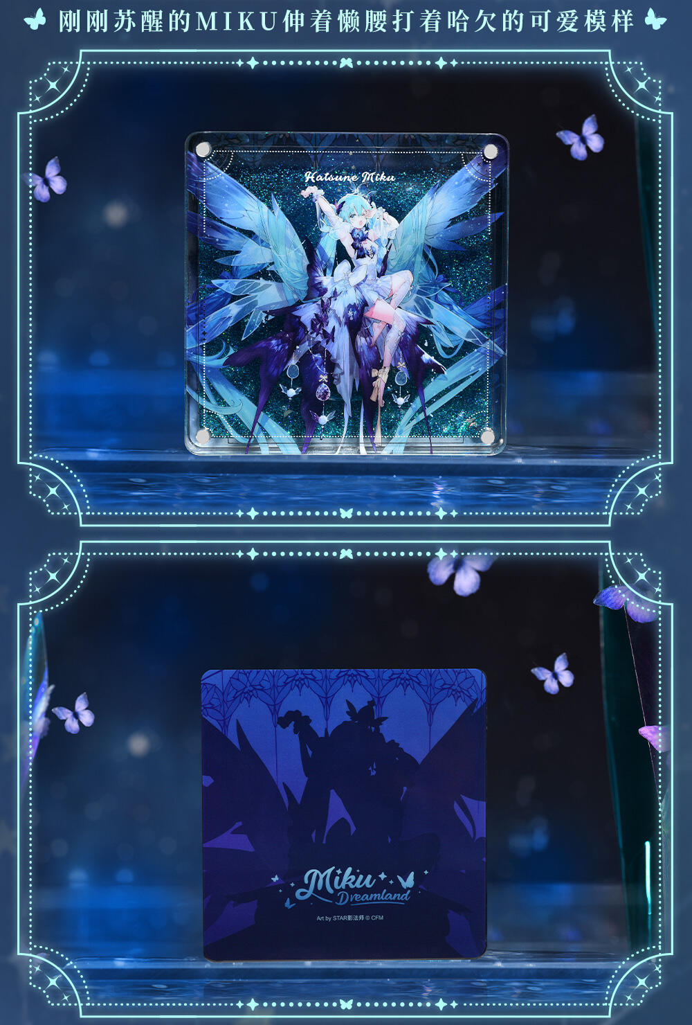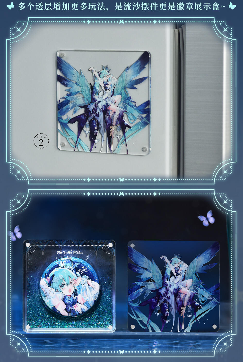 高透亚克力材质,图案清晰,多色流沙细闪,展现星群流动之美。制作精美。刚刚苏醒的MIKU伸着懒腰打着哈欠的可爱模样。多个透层增加更多玩法,是流沙摆件更是徽章展示盒。