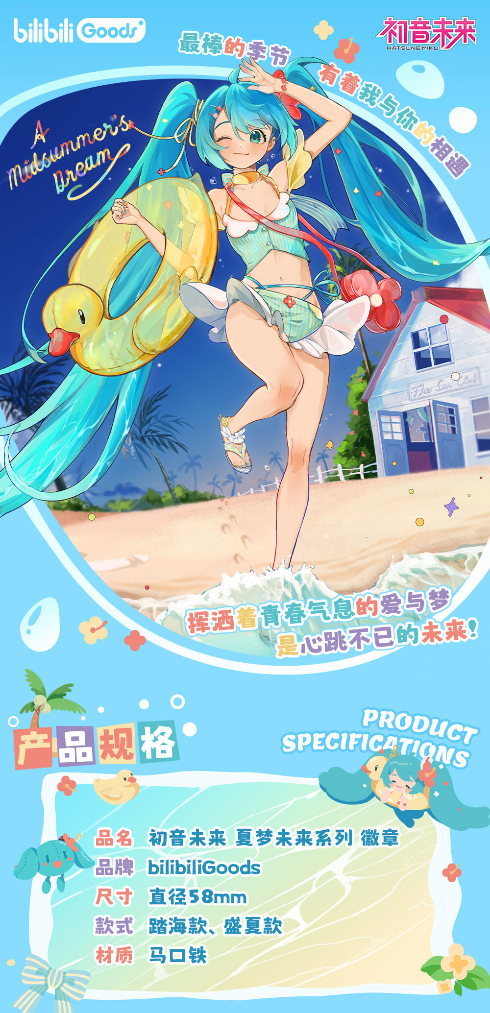 至BilibiliGoods 初音未来 夏梦未来系列 徽章 - 踏海款的链接已被复制