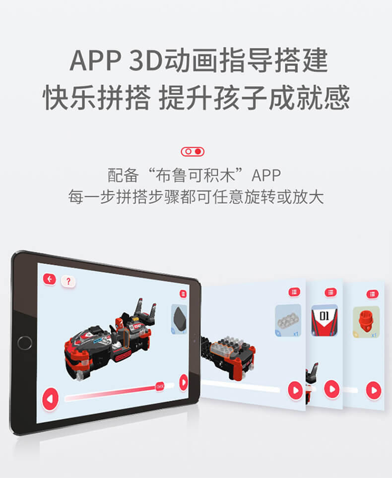 布鲁可正版拼搭玩具,内含多个记录部件,可以用体感控制进行遥控车,适合6岁玩耍
