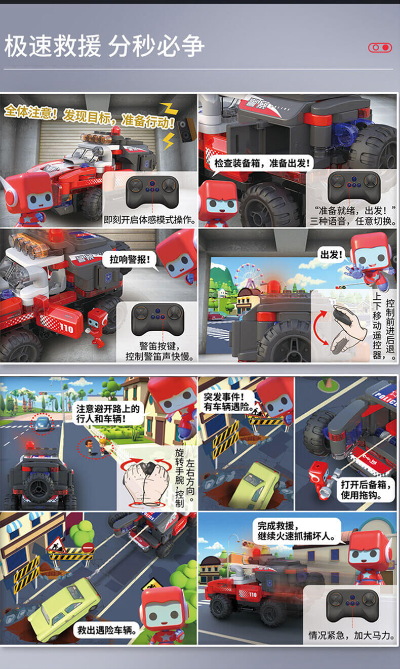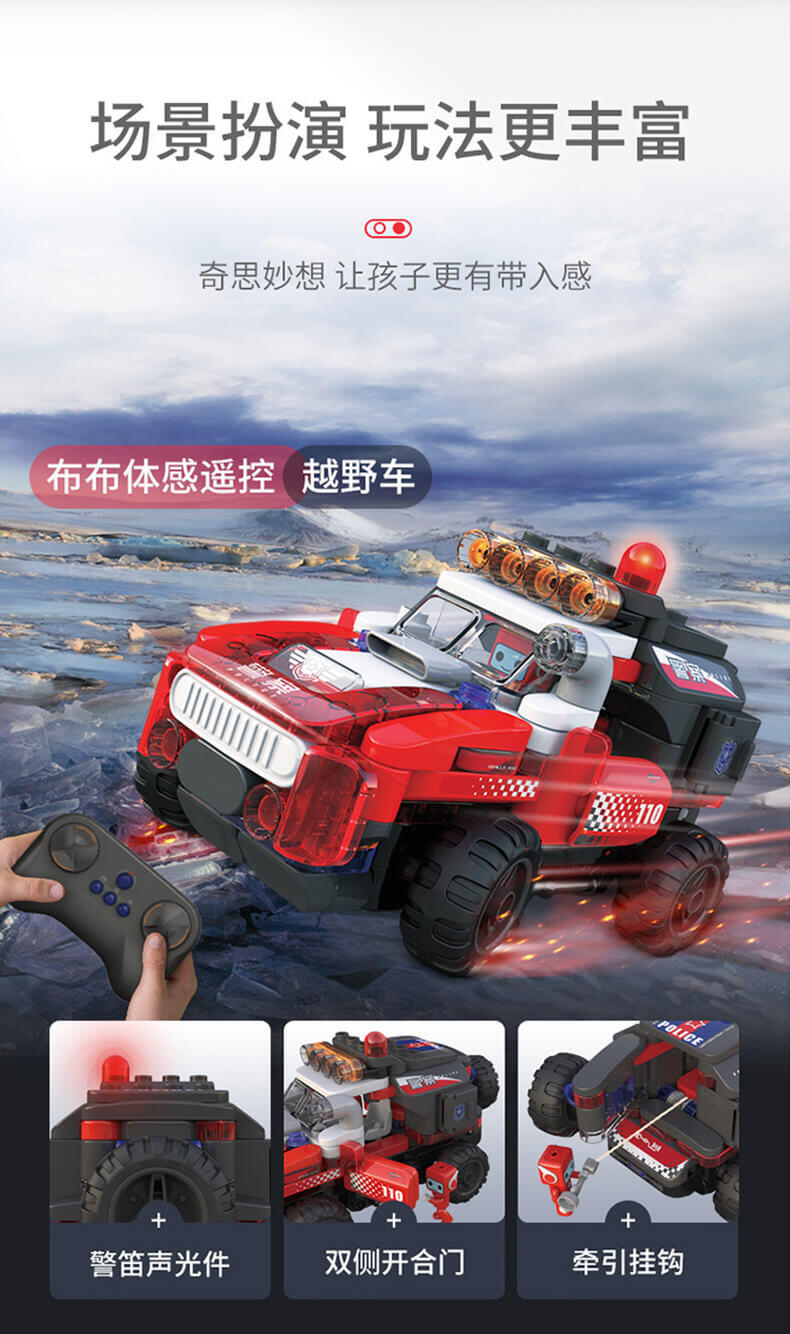 布鲁可正版拼搭玩具,内含多个记录部件,可以用体感控制进行遥控越野车,适合6岁玩耍