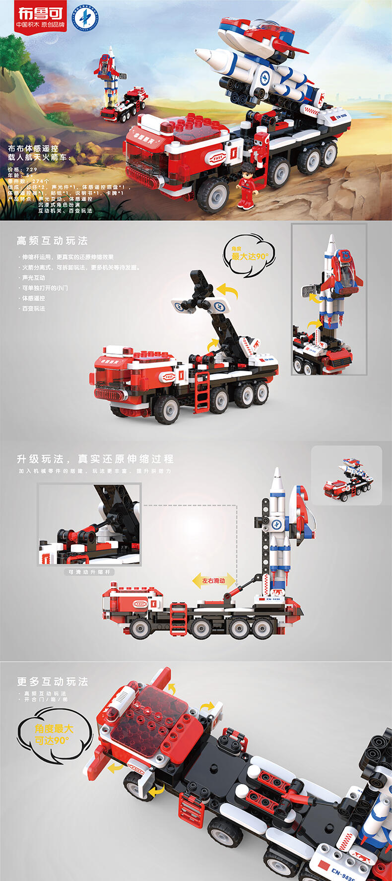 体感&遥控双模式控制;经典IP造型;火箭车与航天飞机结合;搭建内容丰富;百变造型