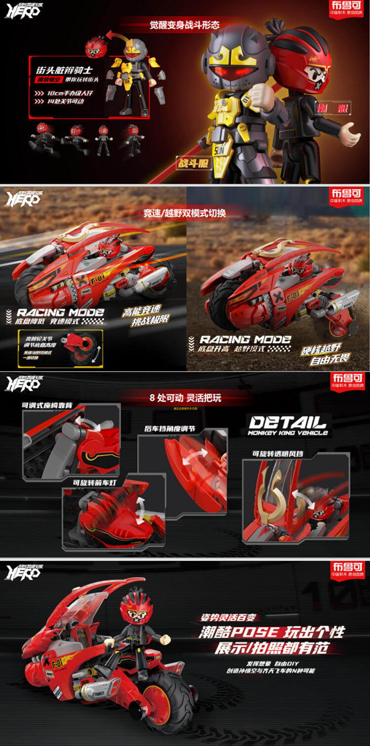 摩托车8处部件可动、竞技/越野双模式切换,超高把玩体验;
