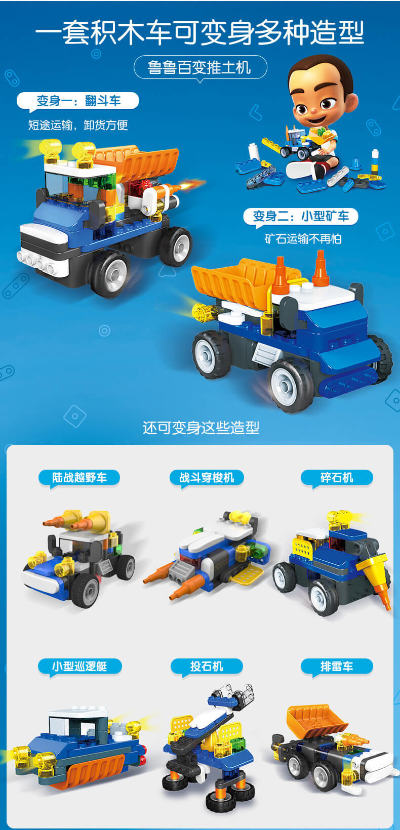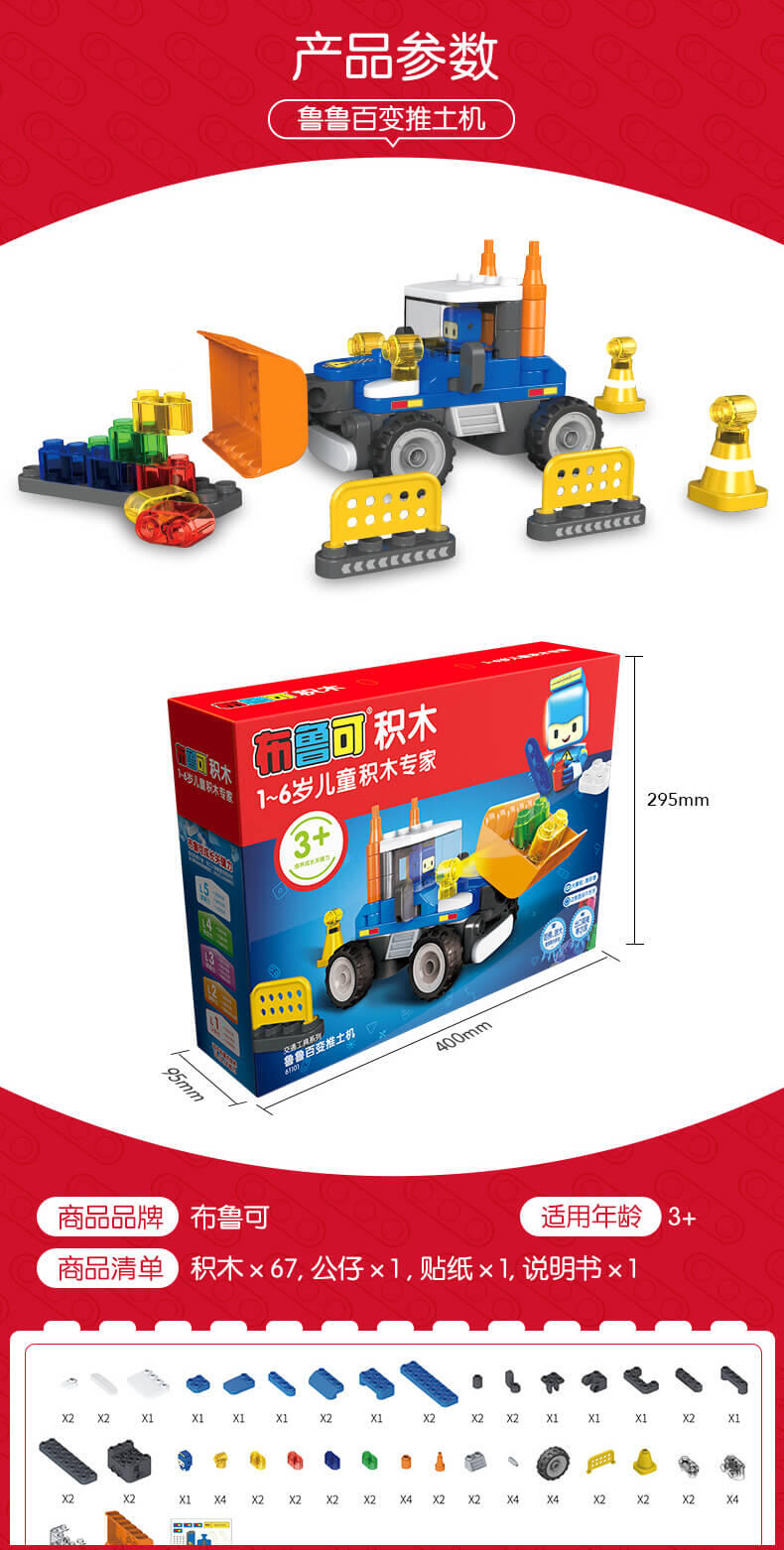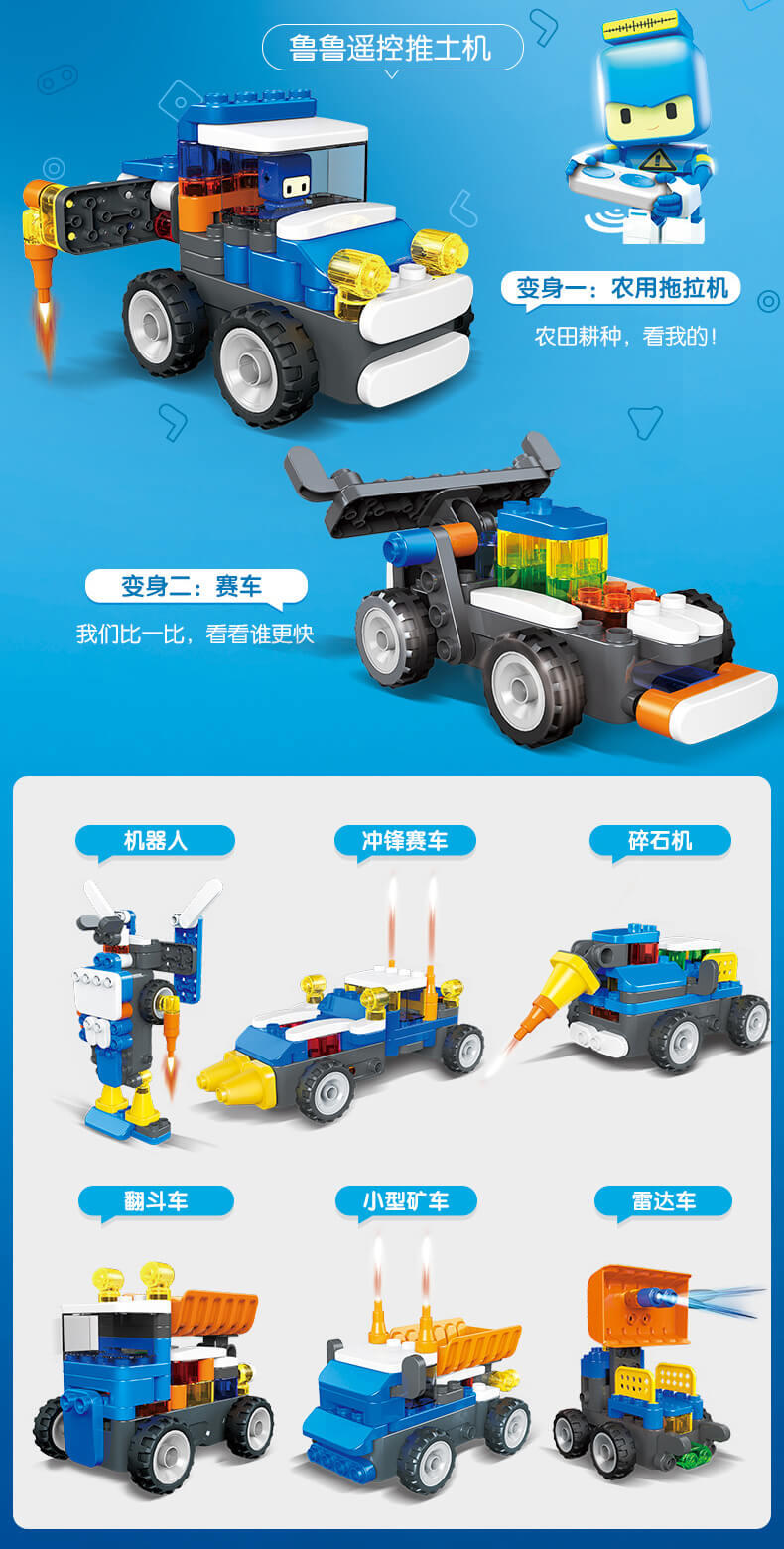 鲁鲁遥控推土机是属于力量型车系,是鲁鲁系列中深受小朋友欢迎的一款产品。可以百变8种造型,推土铲可上下弯动仿真模拟,配备遥控功能,让小朋友更具有真实感的进行角色扮演。