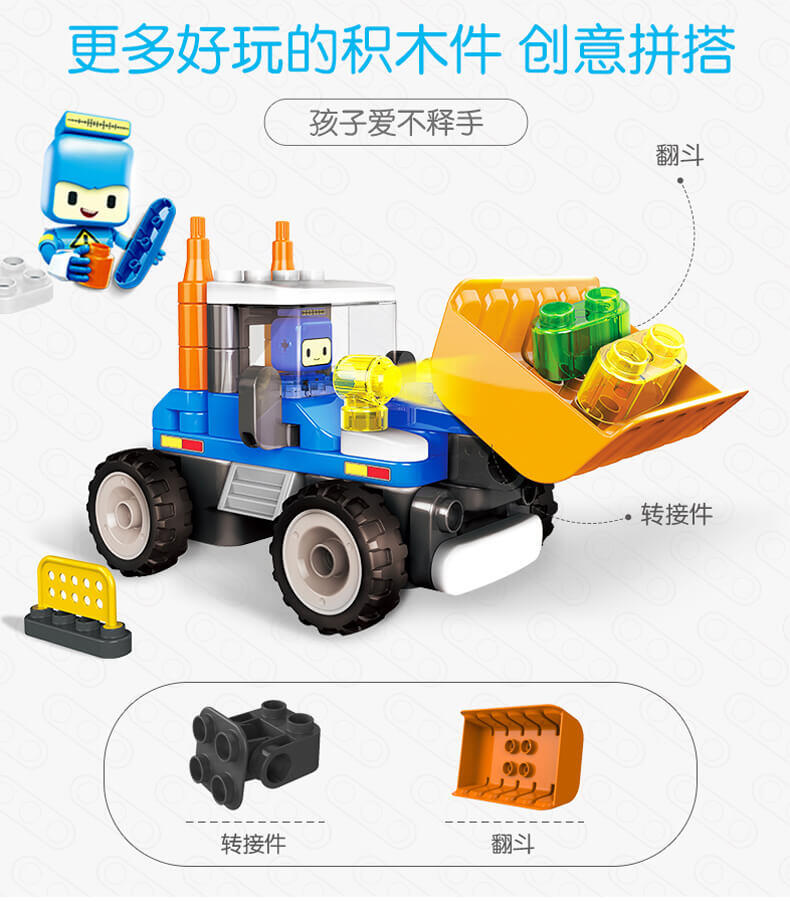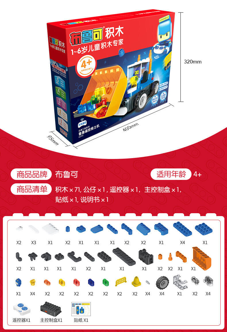 Bloks布鲁可积木 大颗粒积木-鲁鲁遥控推土机