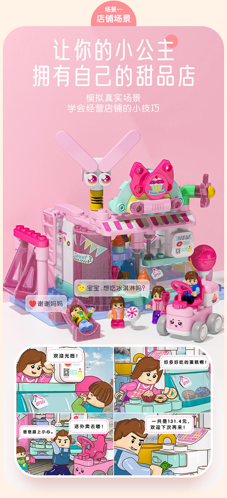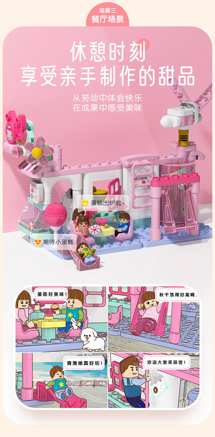 1、主造型三大场景玩法“经营甜品店”“做甜品”“吃甜品”
