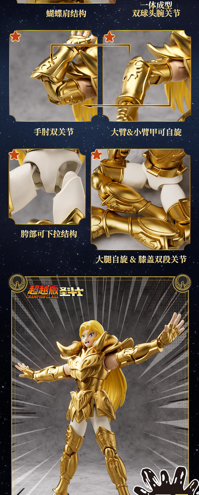 1、圣斗士IP 2、喷漆工艺 3、多处关节可转动 4、收藏价值