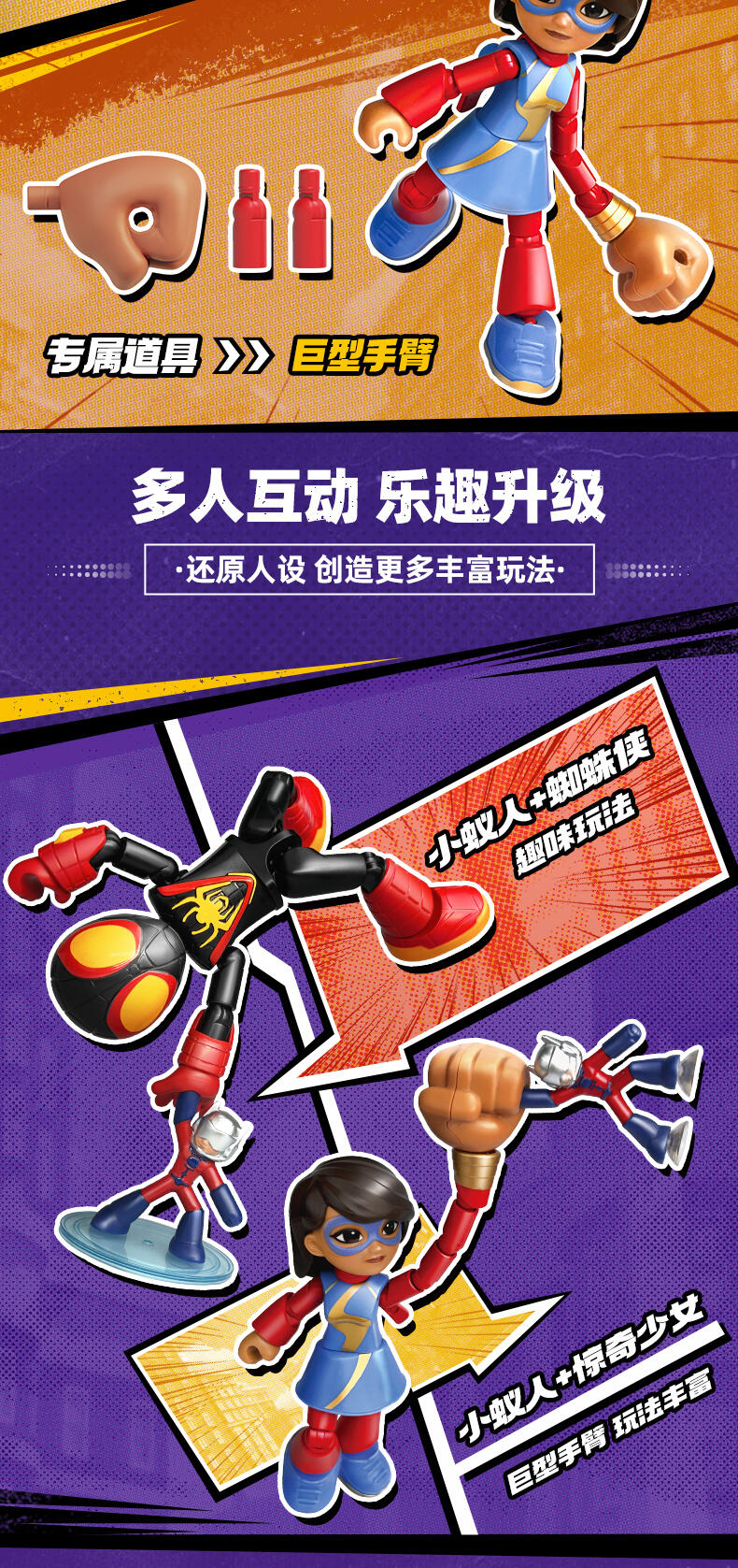 1.漫威IP 2.卡通版 3.多处关节可动、玩法丰富