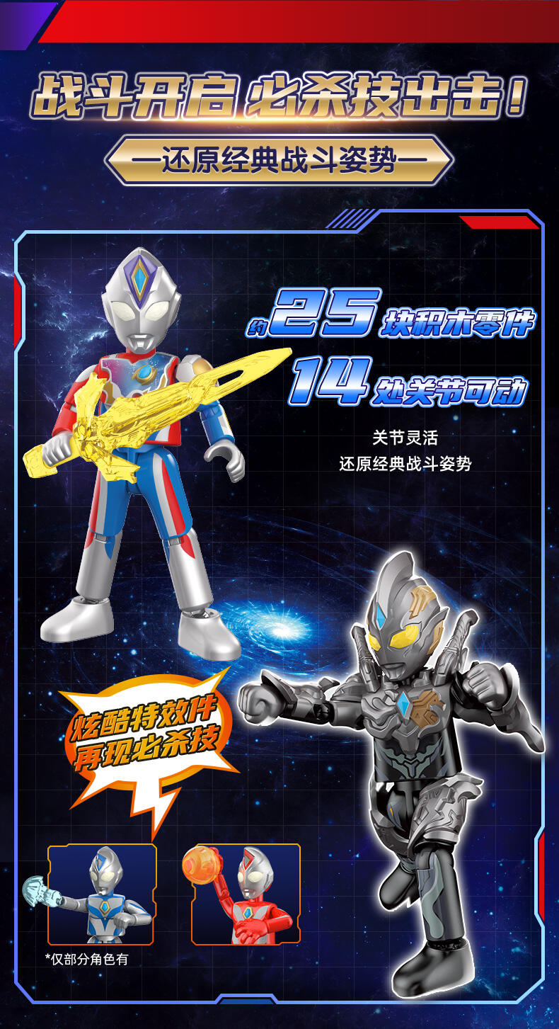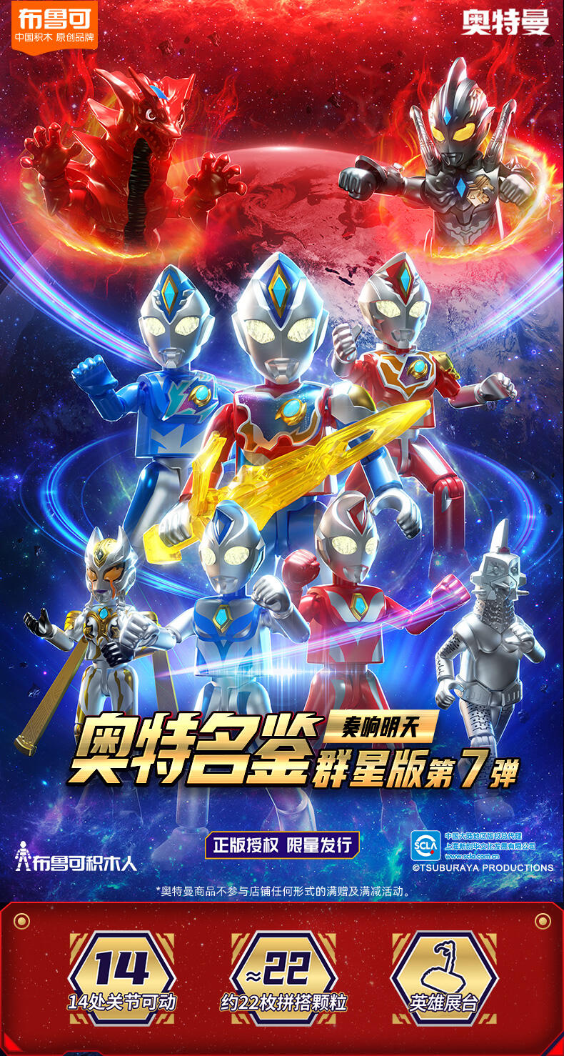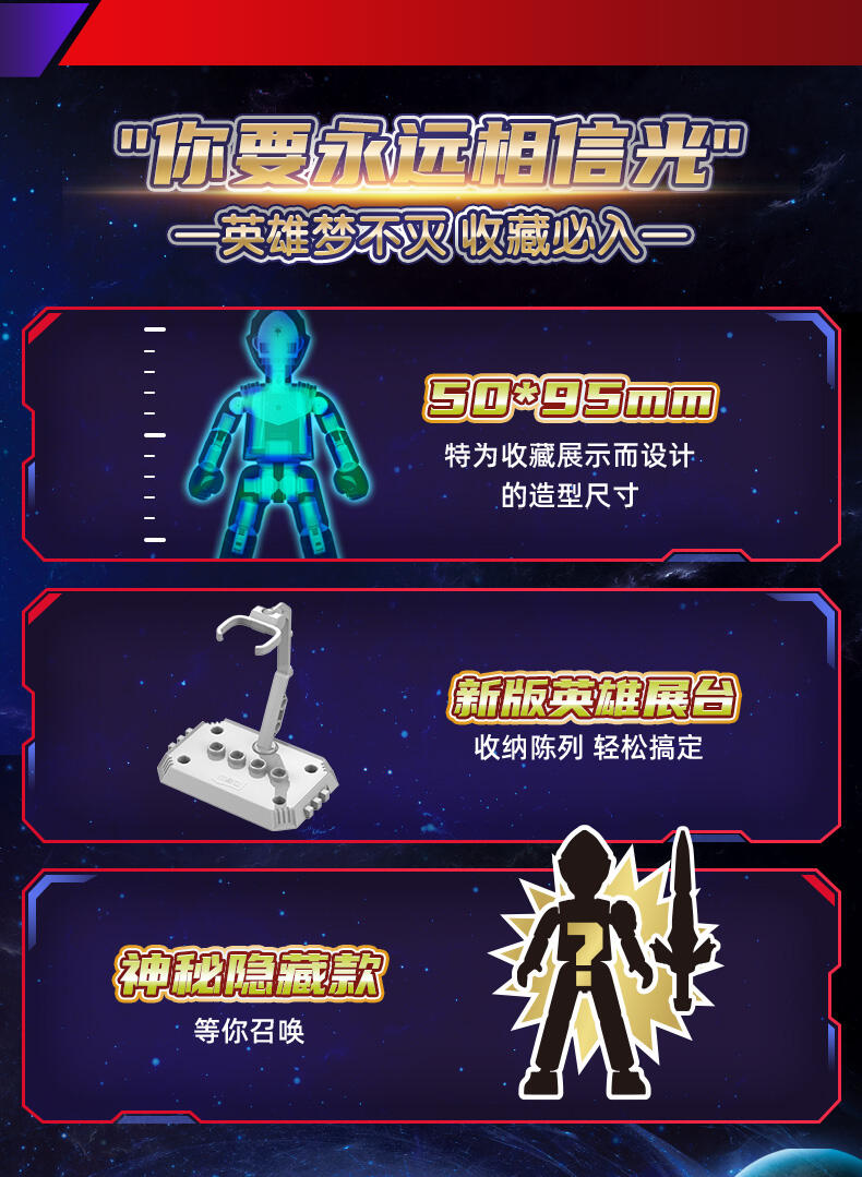14处关键可动,还原经典战斗姿势。约22枚拼搭颗粒,带有英雄展台。