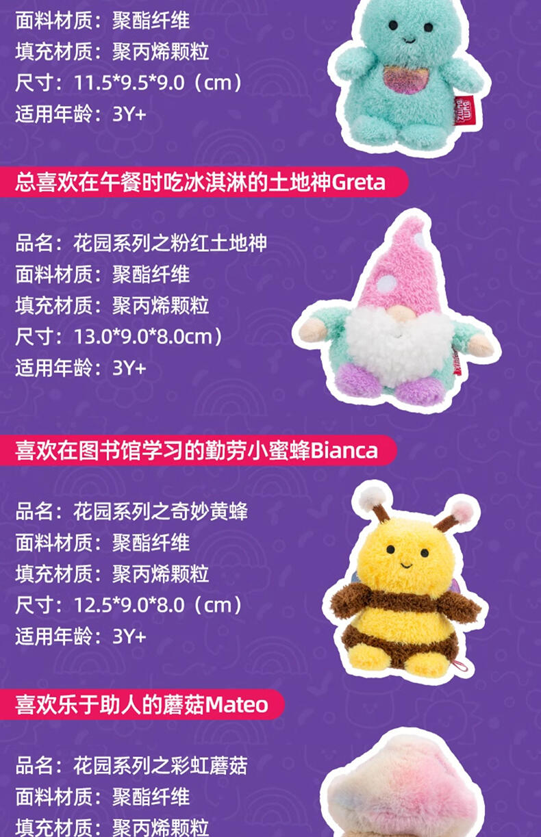 我是柔软的棒棒仔:各种超可爱毛绒;底部装有颗粒豆,有手感,有一定重量适合陈列嬉戏玩耍。我有美式潮流的个性:古怪奇特的拟人化设计,每个角色都是独特的个性,追逐流行文化。 我有很多主题和人物,请收藏我:主题系列毛绒,保证设计的丰富性和新鲜感,整合不同面料质地,具有很强的收藏属性。有植物、动物、食物、家居、生活方式等不同趣味款式。