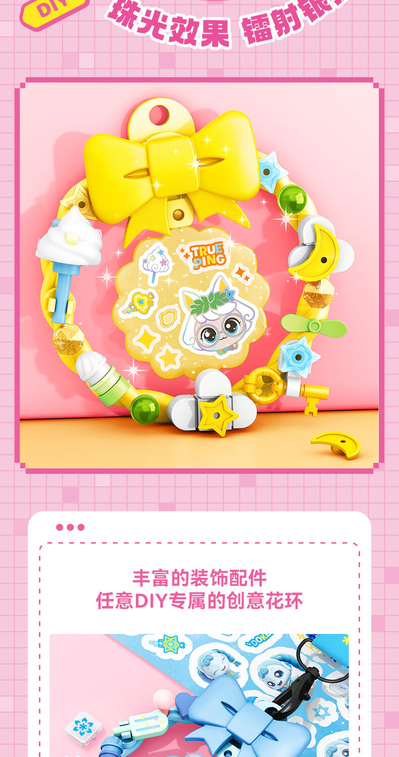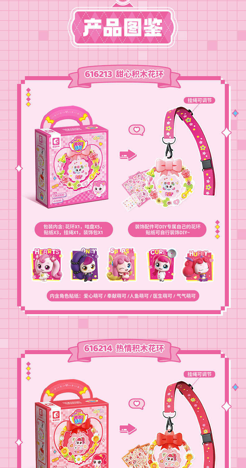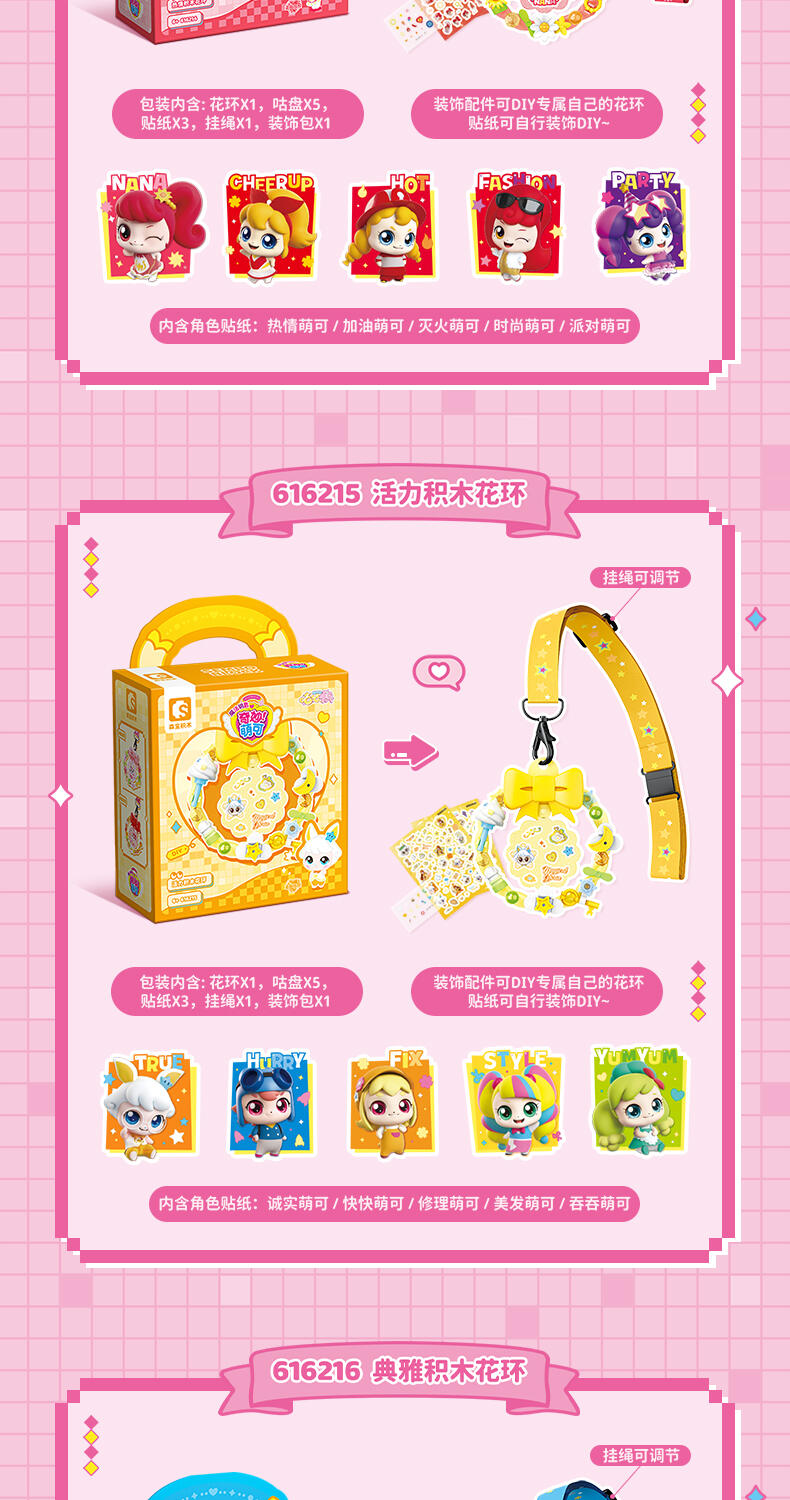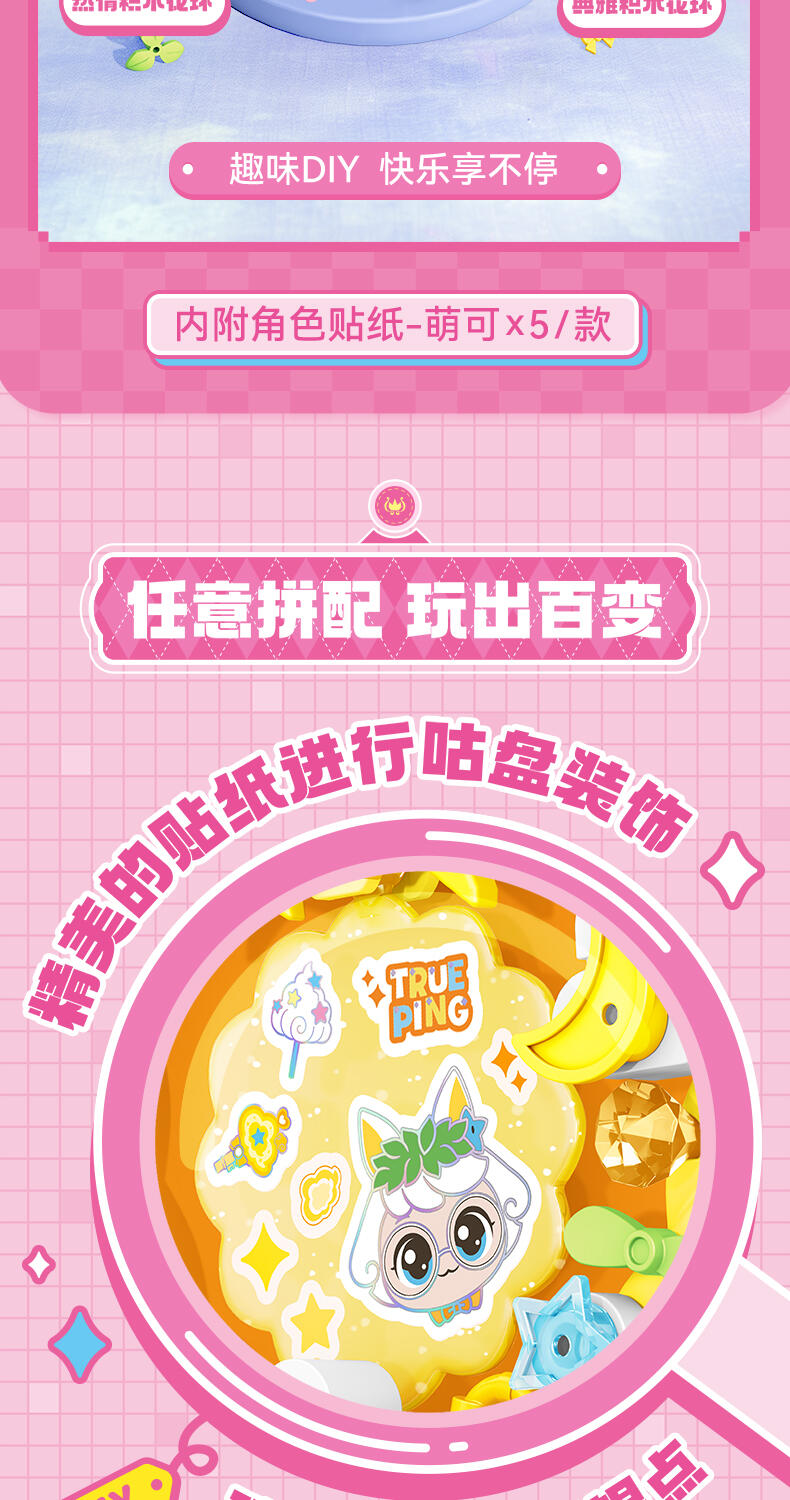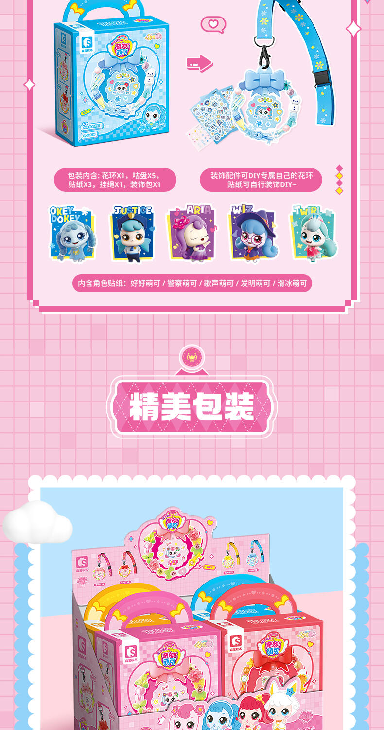 1、大量萌可形象的贴纸,便于小朋友收集。 2、可用颗粒自行DIY装饰花环和进行萌可贴纸装饰,自行设计后可挂在包上或朋友互赠。