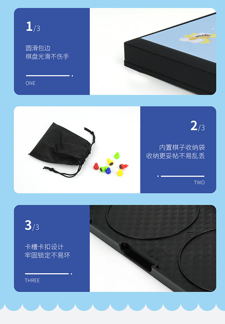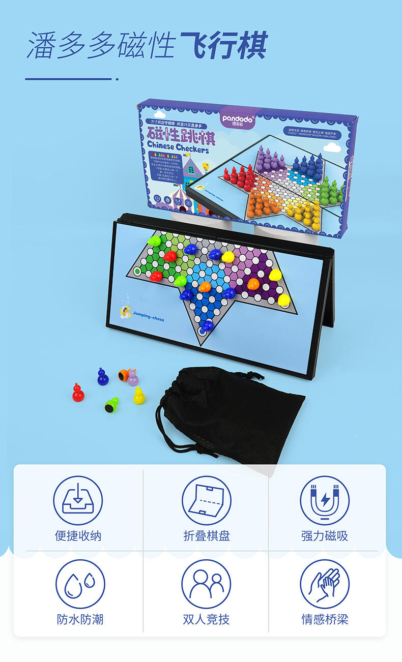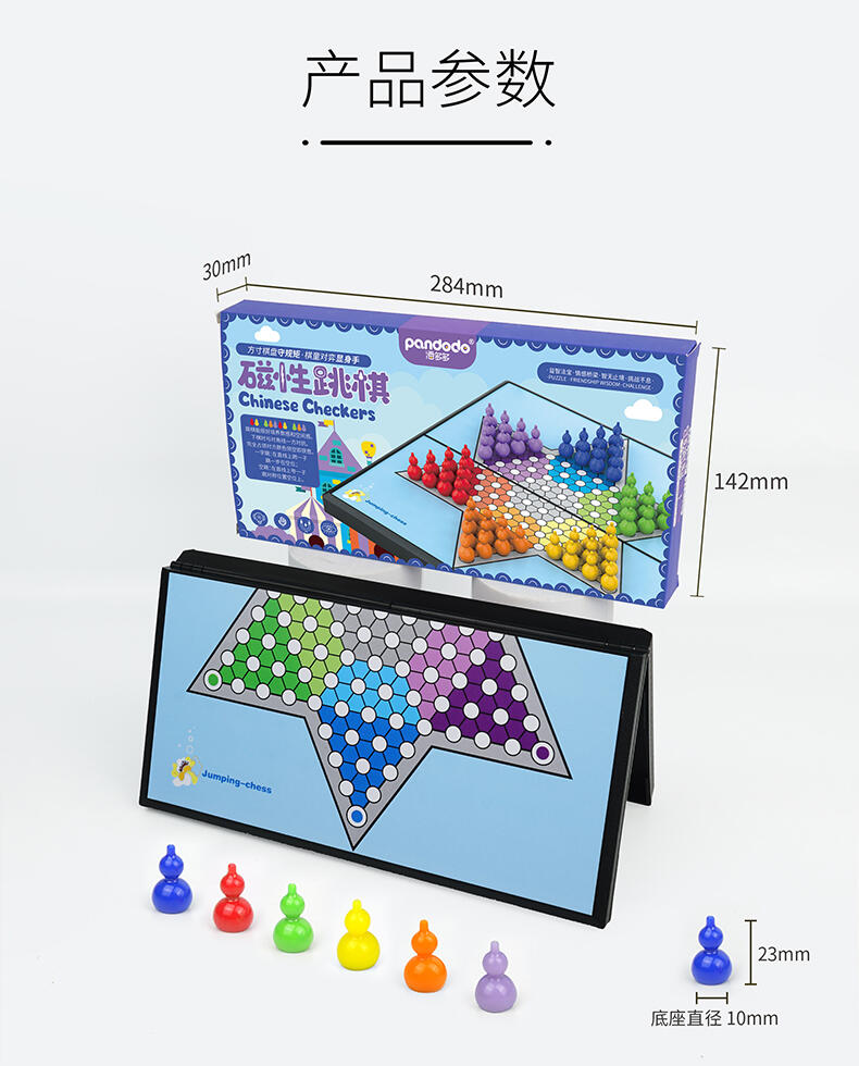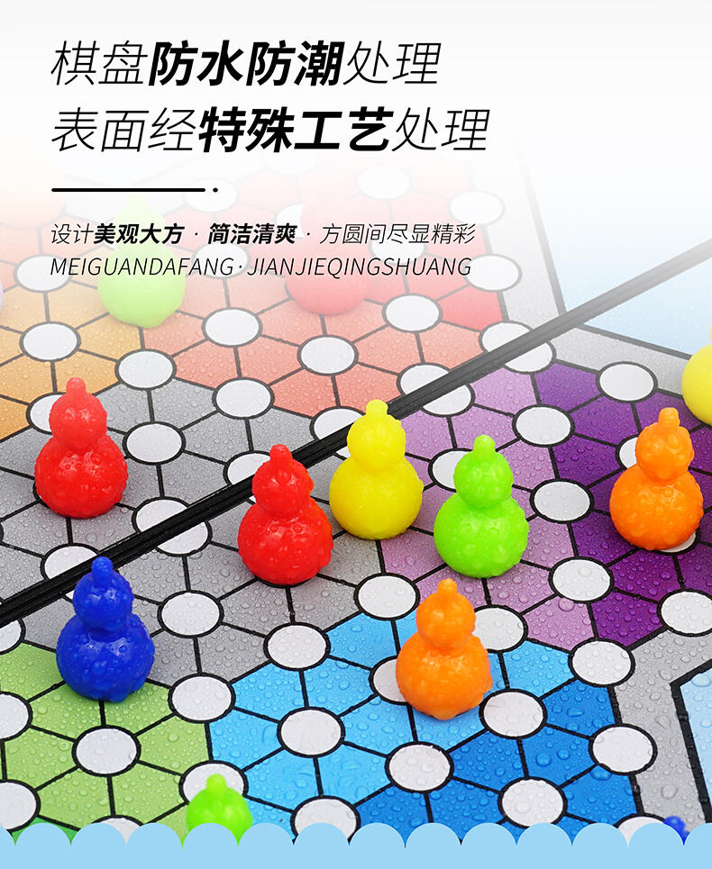 可折叠棋盘,方便收纳和携带。跳棋,妙趣横生,它的互动性可以给人带来很多的欢乐时光,朋友聚会、家庭休闲、亲子游戏等都可以一起玩。