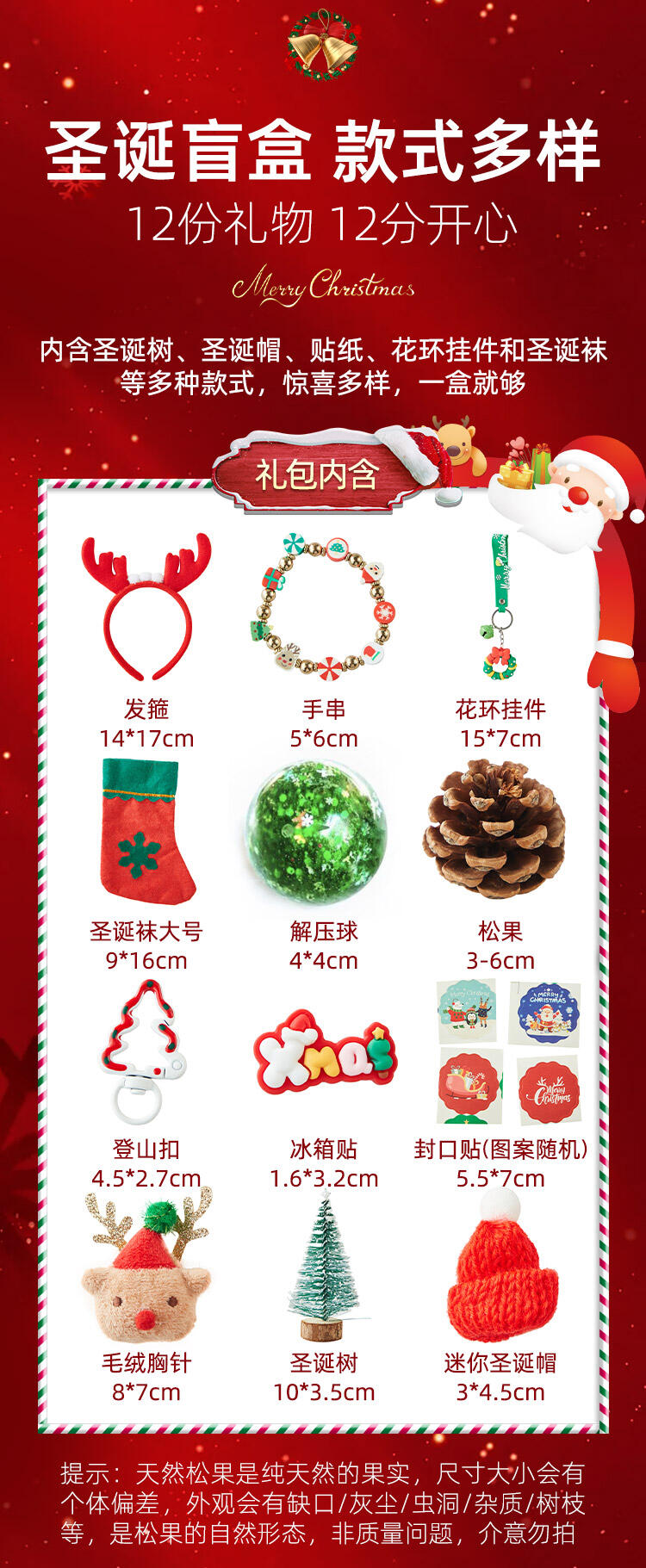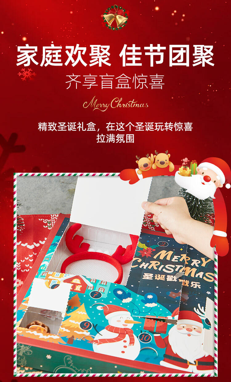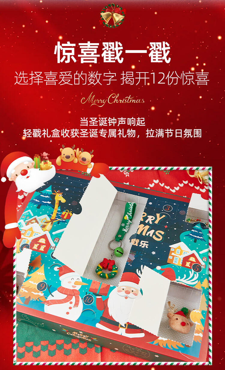 "1、礼盒突破传统礼物的单调感,每一格的开启,都是未知的惊喜2、圣诞节专属礼物,节日氛围拉满 3、轻轻一戳,心动礼物即刻呈现 4、款式多样,一盒就够"