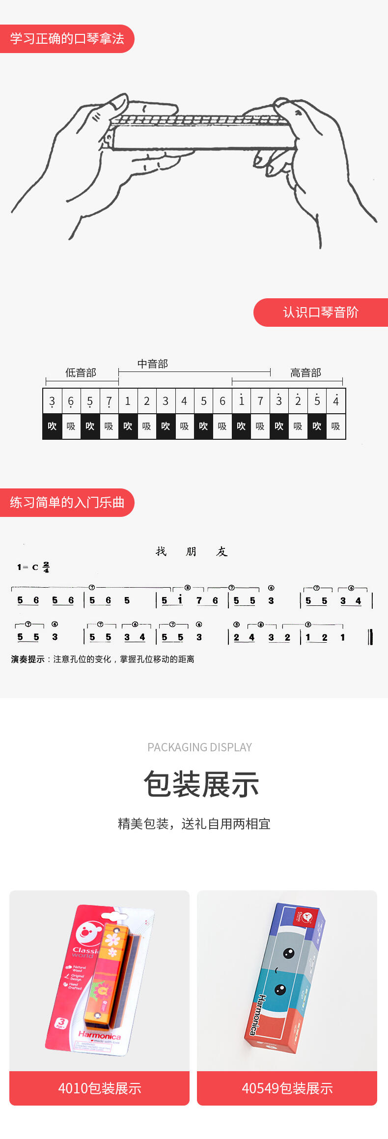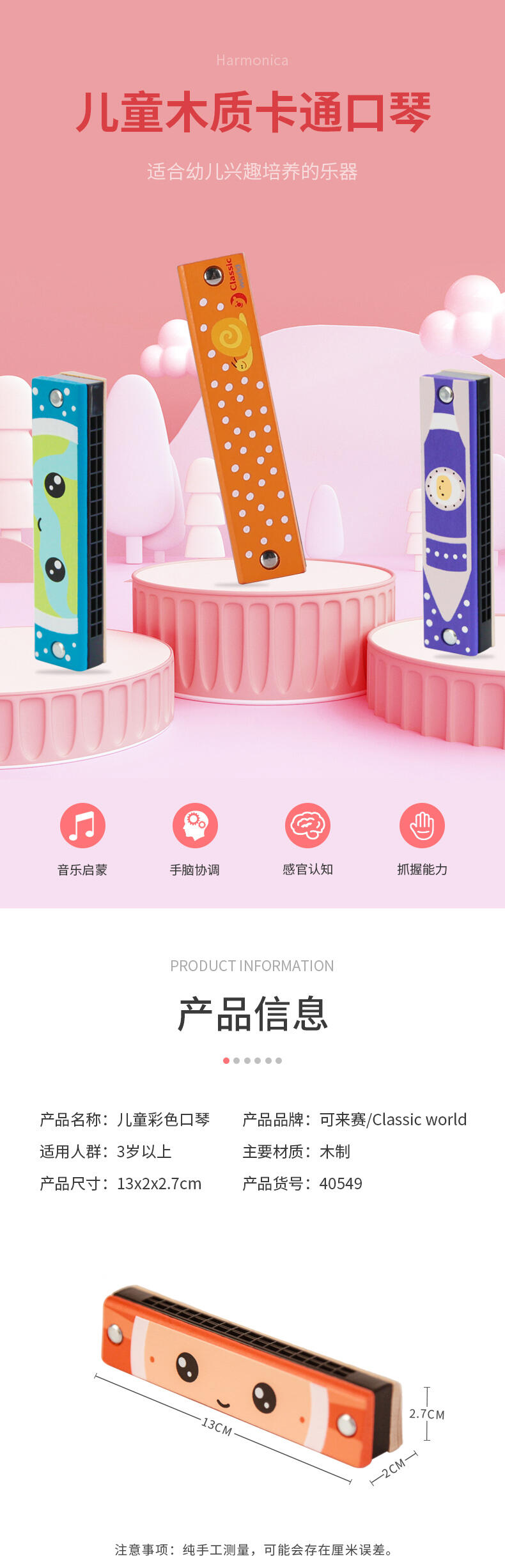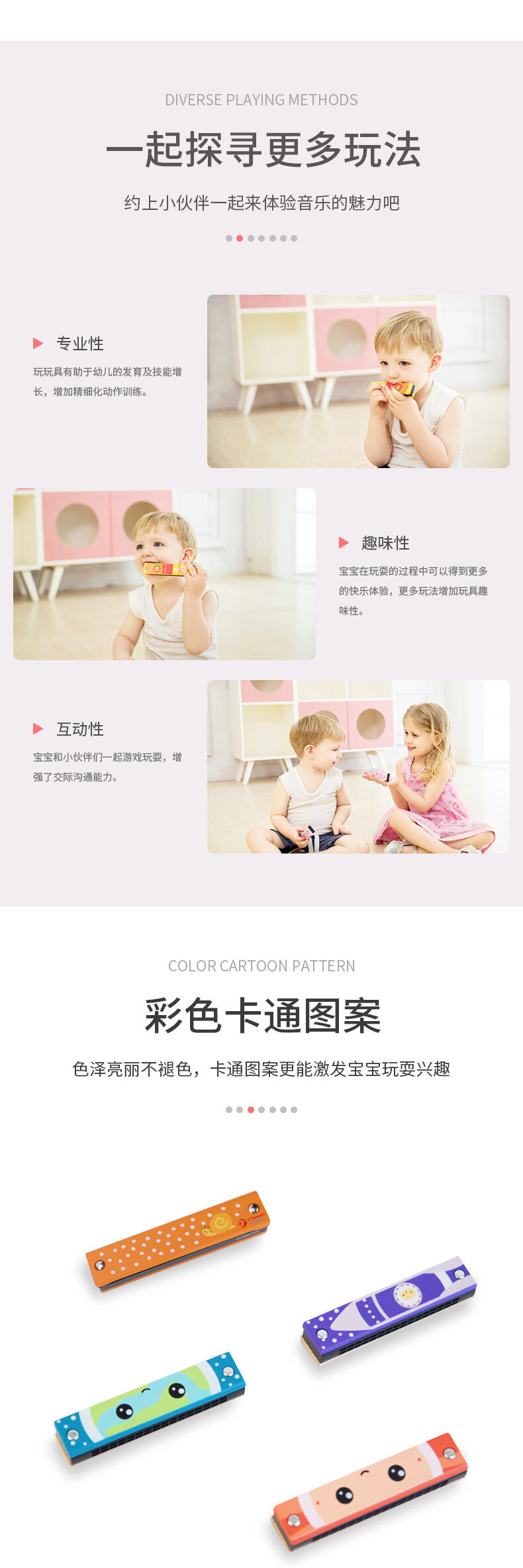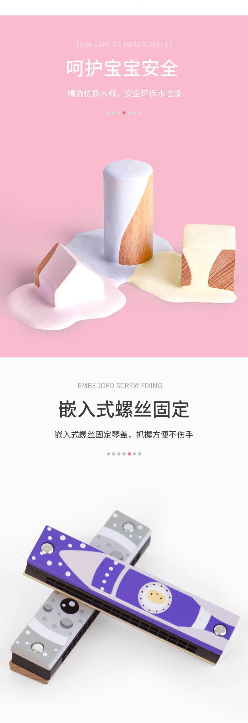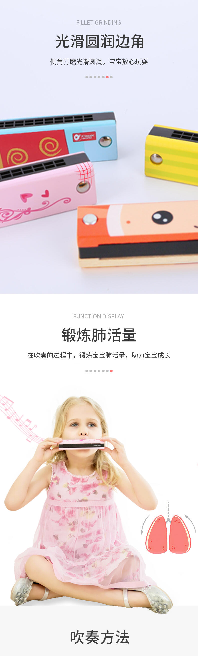 16孔口琴,安全环保木质吹嘴,吹奏时有效锻炼宝肺活量,音乐启蒙入门玩具,吹奏优美,轻巧方便携带。