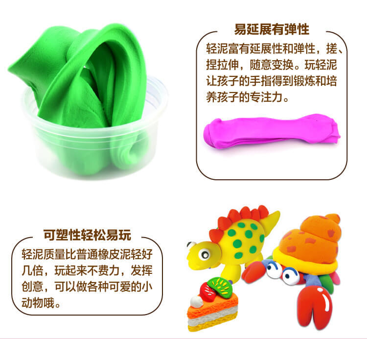 粘土有延展性和弹性,锻炼手指和培养专注力。