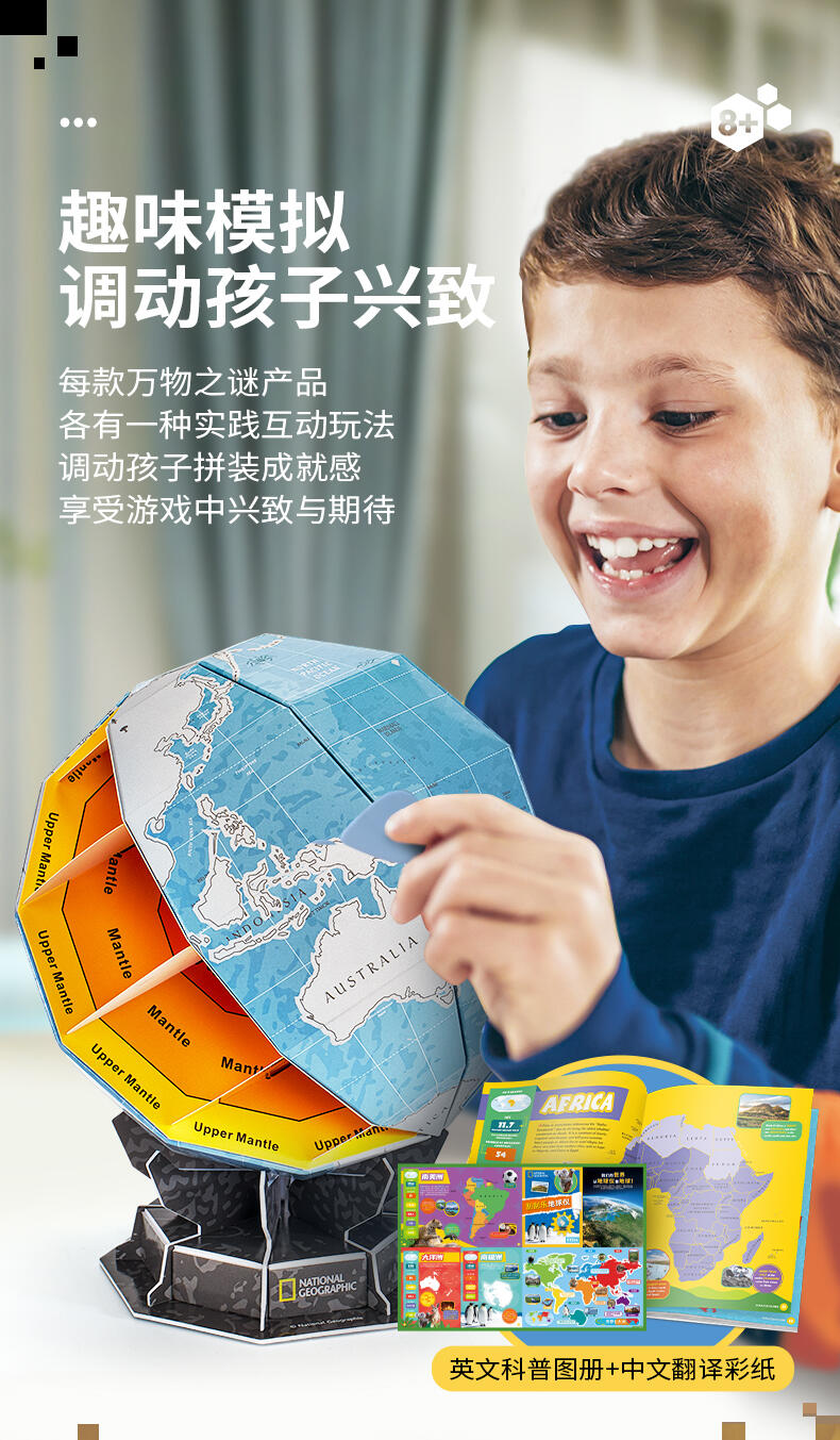 国家地理万物之谜系列3D拼图,趣味模拟,调动孩子兴致,玩中有练,协调孩子手脑。探秘地球内部结构,刮开涂层,探索大陆。