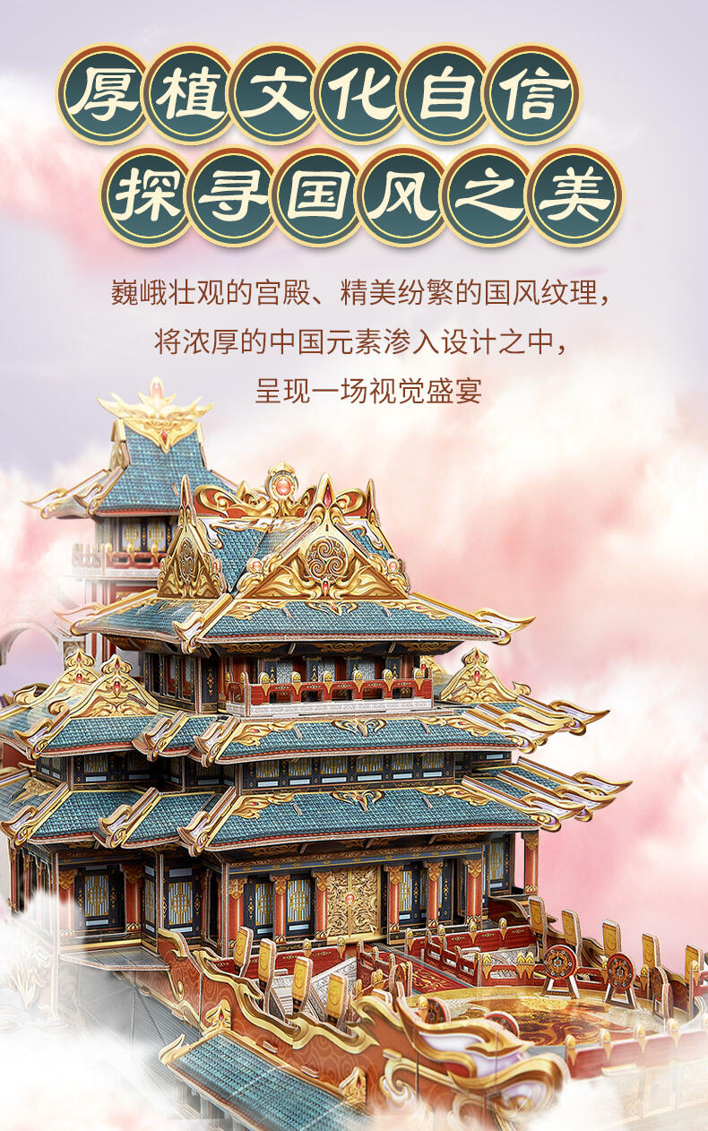 巍峨壮观的宫殿、精美纷繁的国风纹理,将浓厚的中国元素渗入设计之中,呈现一场视觉盛宴