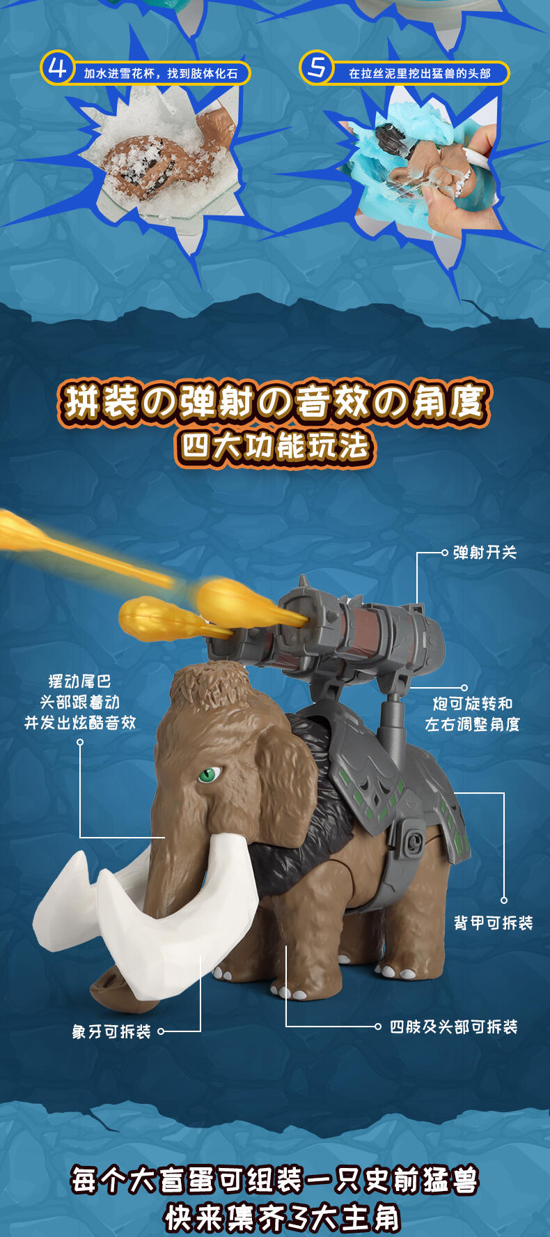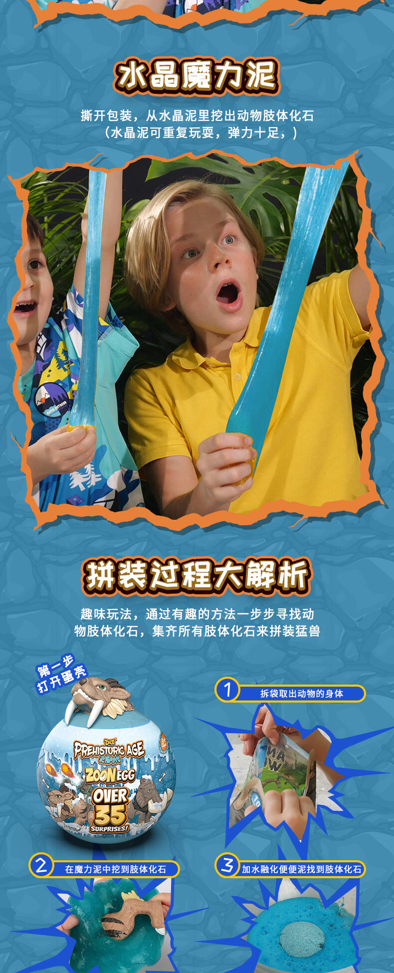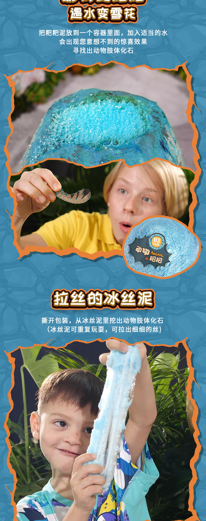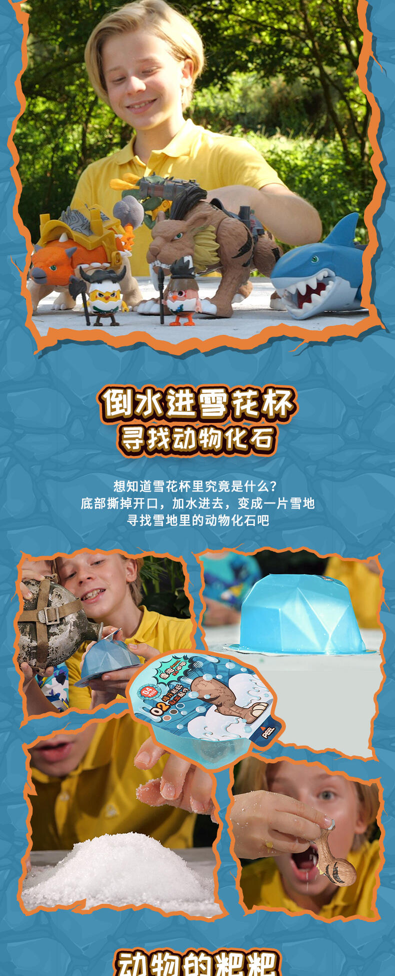 跟随宝藏图的引导一步一步解锁4种物质中隐藏的恐龙/史前动物碎片,集齐碎片即可组装成大恐龙/史前动物。2.严选优质材料,放心玩耍3.可随机开出更多有趣好玩物品,35惊喜等你发现