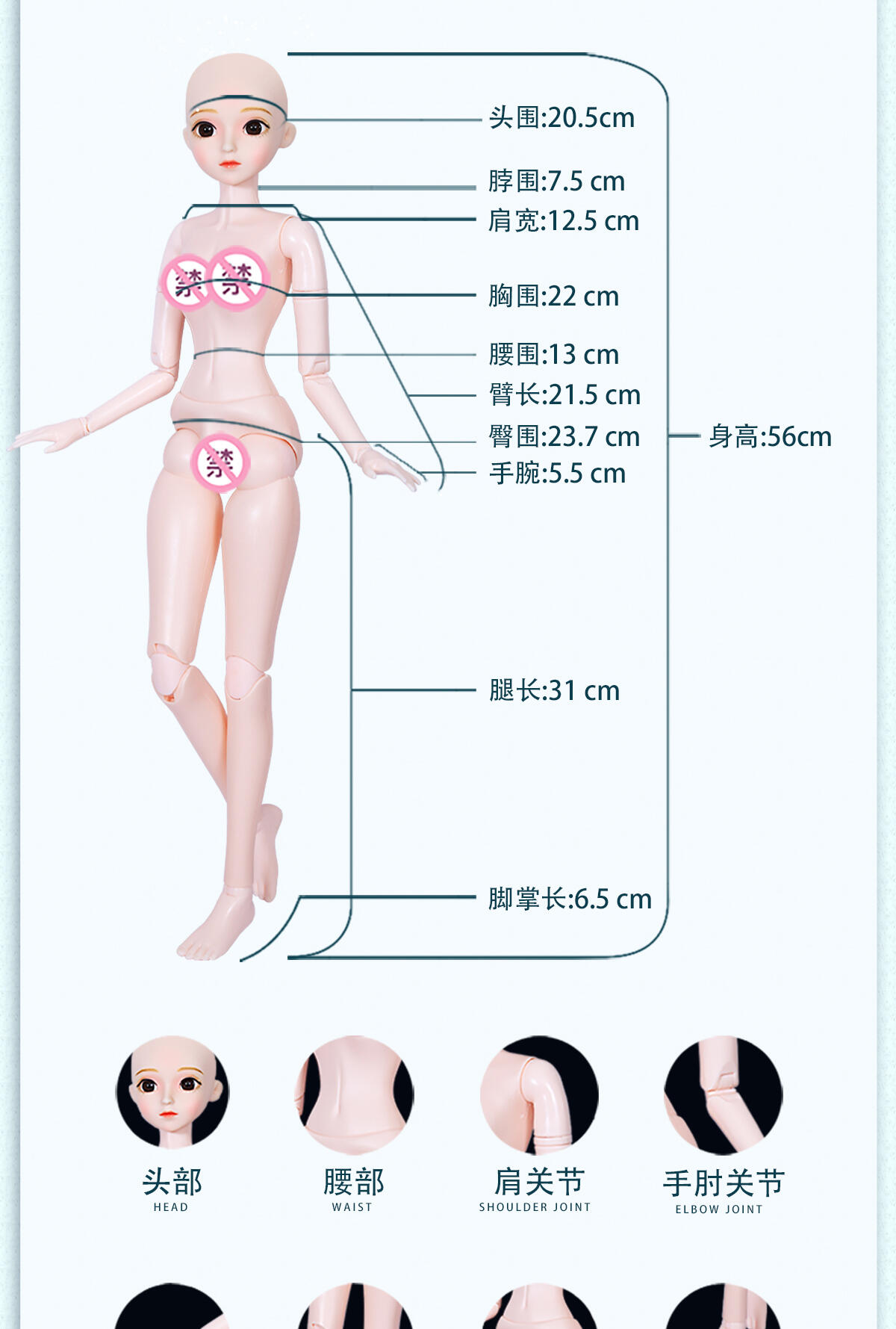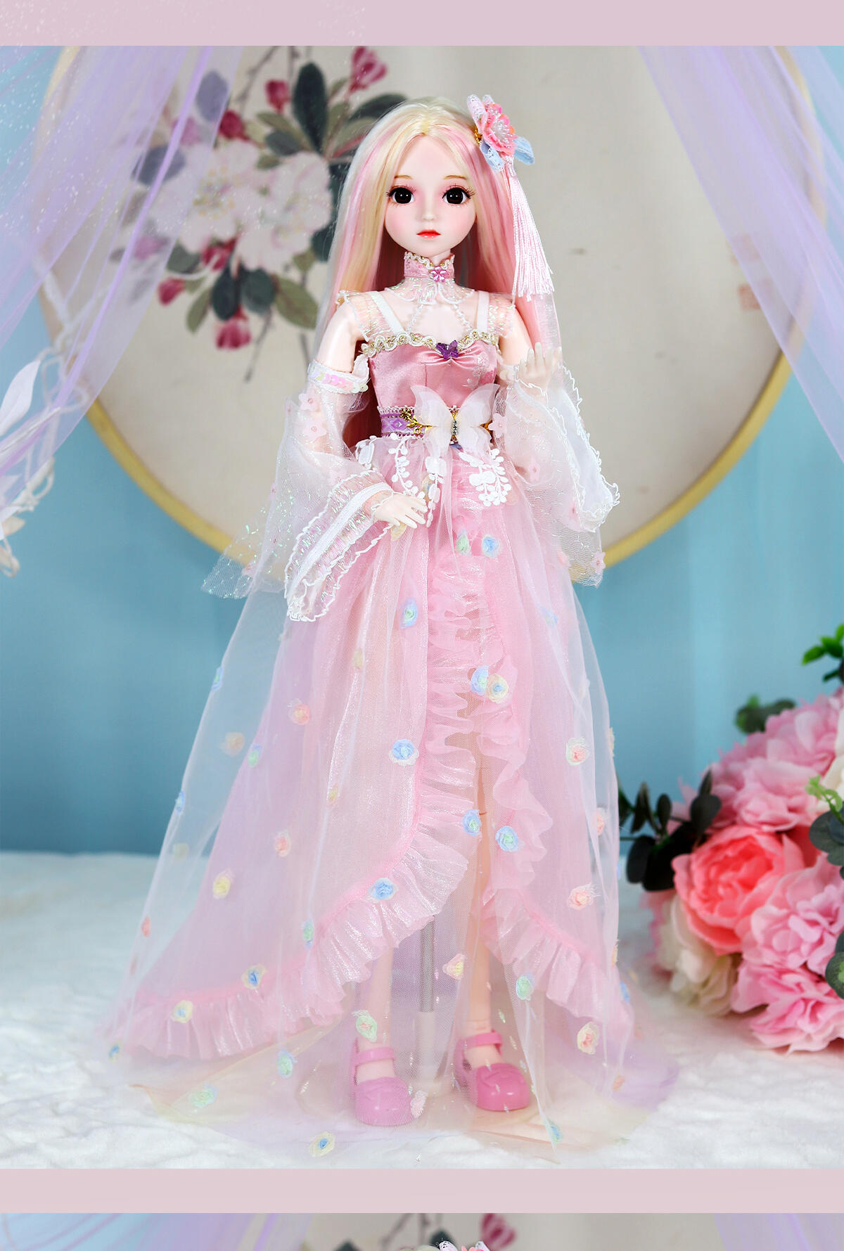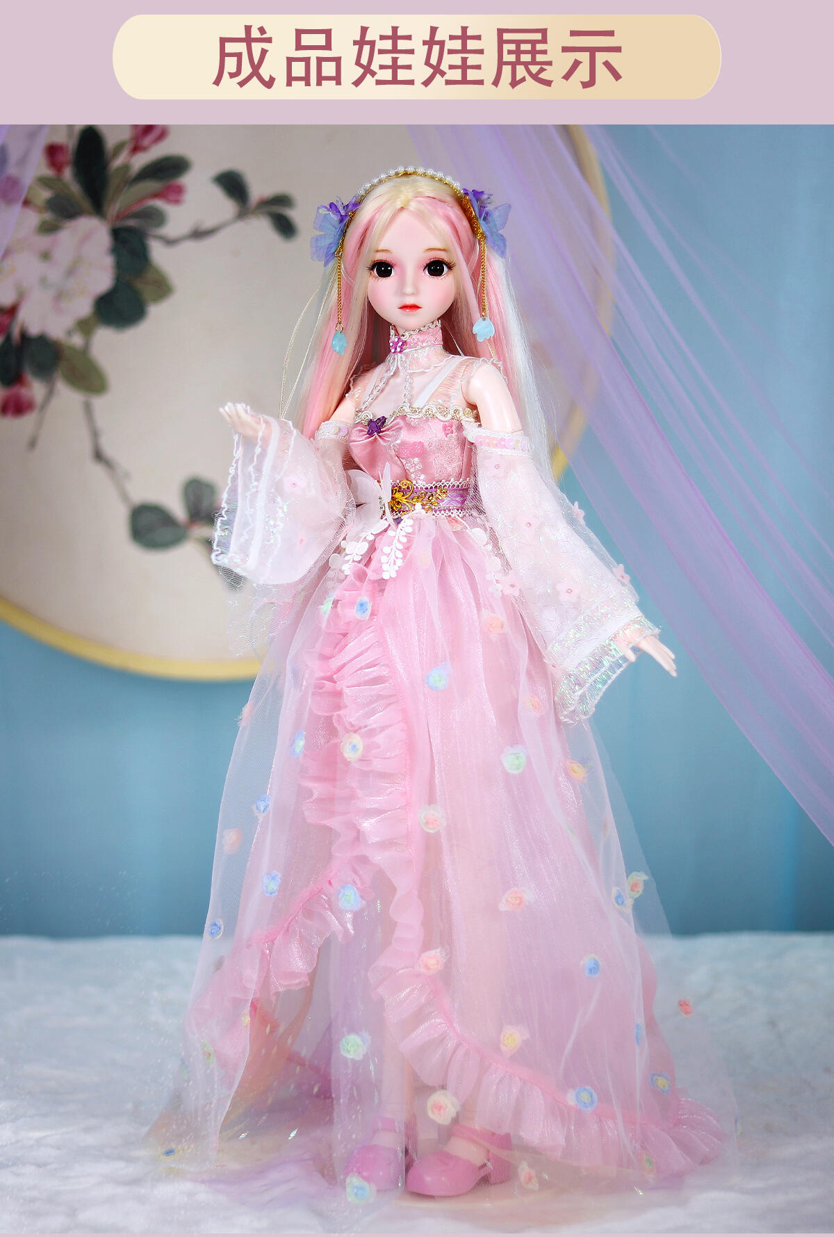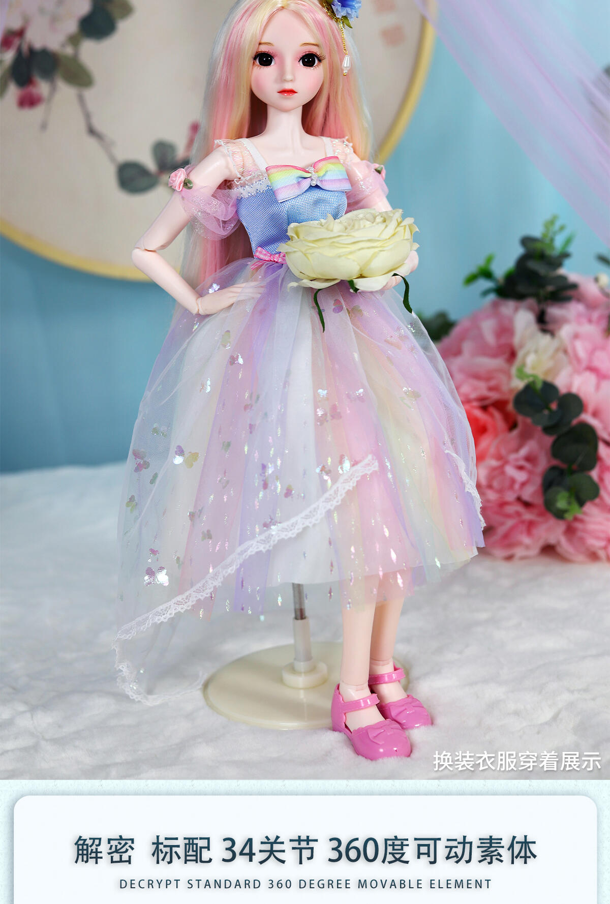 55公分高度大娃娃,灵活的关节,多套配饰,可随心搭配,四款发卡可给小孩自己佩戴在头上。